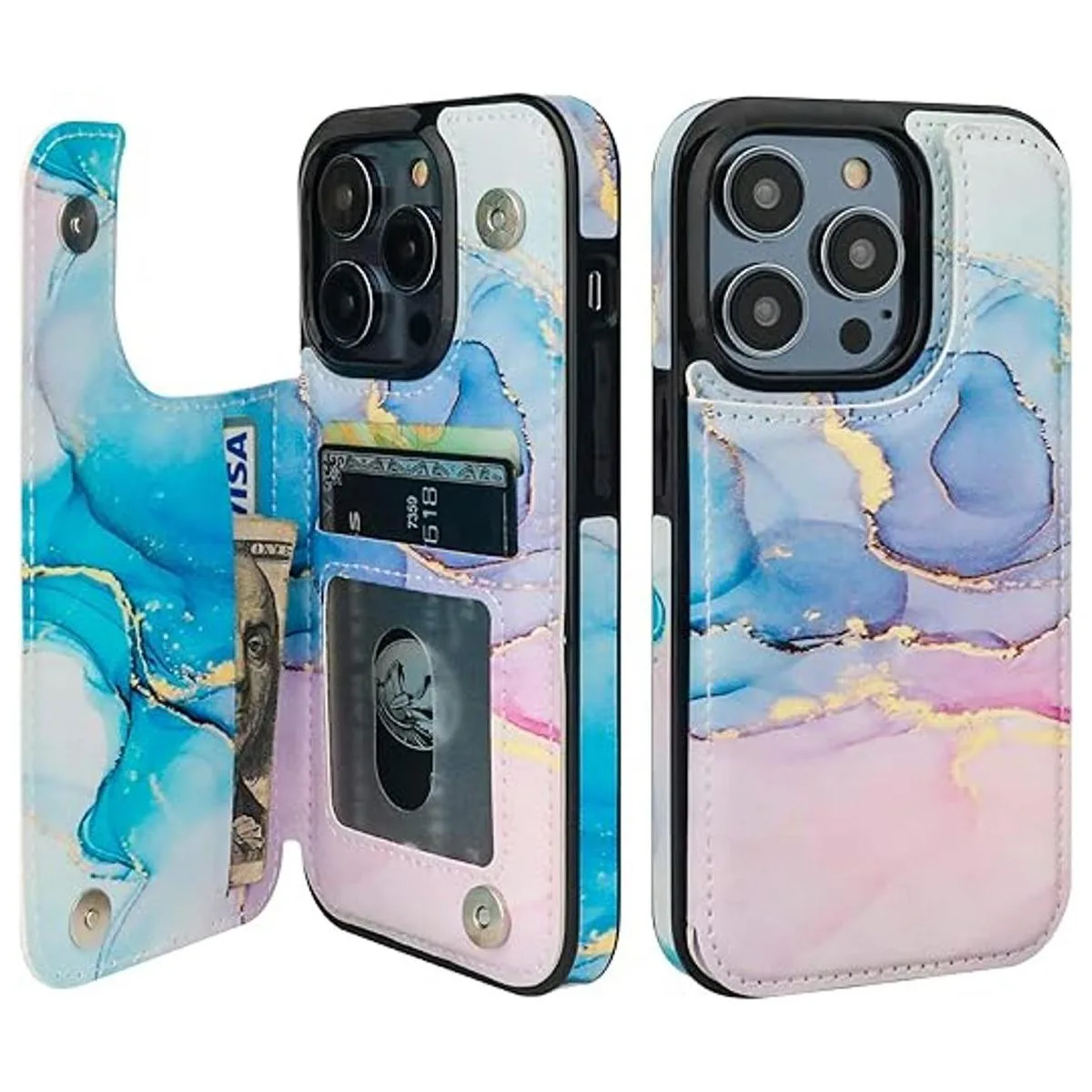 HAOPINSH Funda tipo cartera para iPhone 14 Pro con soporte para tarjetas, diseño de mármol rosa azul con tapa trasera de piel sintética con ranuras para tarjetas para mujeres y niñas, doble cierre magnético a prueba de golpes, 6.1 pulgadas