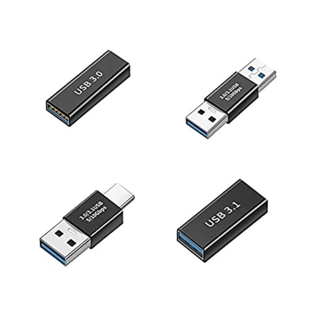 Haoquoou 4 piezas Kit adaptador USB 3.0, soporte de carga y transferencia de datos, conector de conversión extendida de alta velocidad