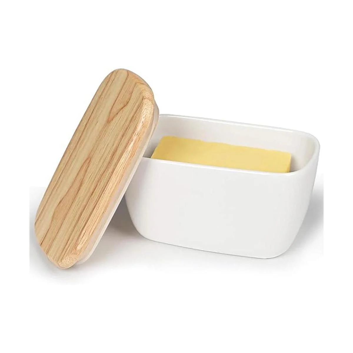 HAOTOP Mantequilla de porcelana perfecta para 4 barras de mantequilla, contenedor de mantequilla grande de cerámica con tapa blanco