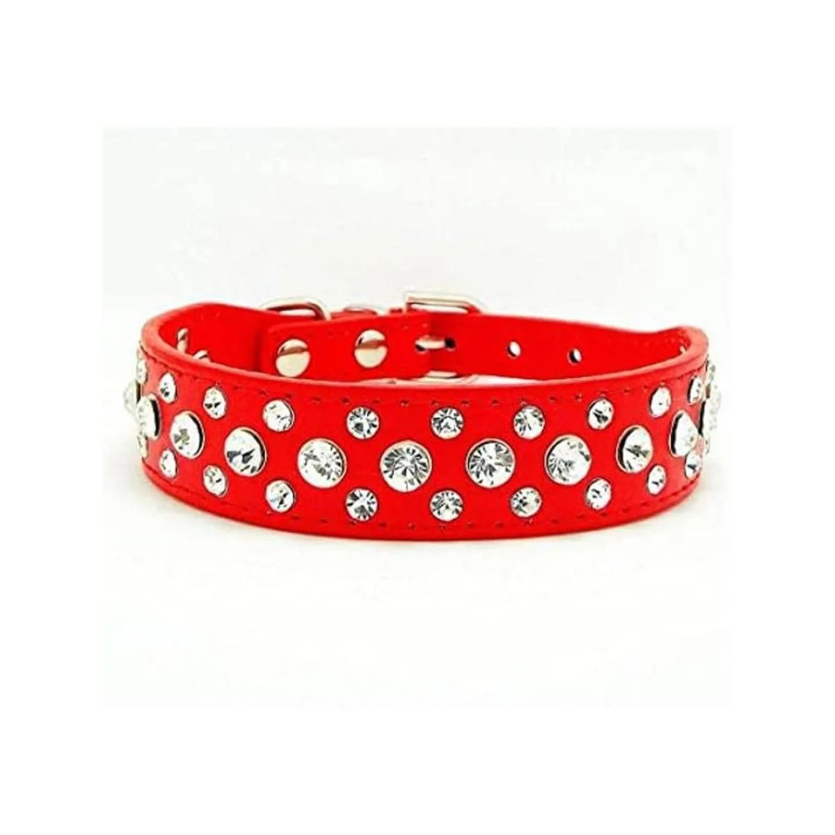haoyueer Bling Rhinestone Collar de cuero sintético con diamantes de imitación para mascotas, perro, gato, cachorro, negro, S, M, L, XL, rojo, M