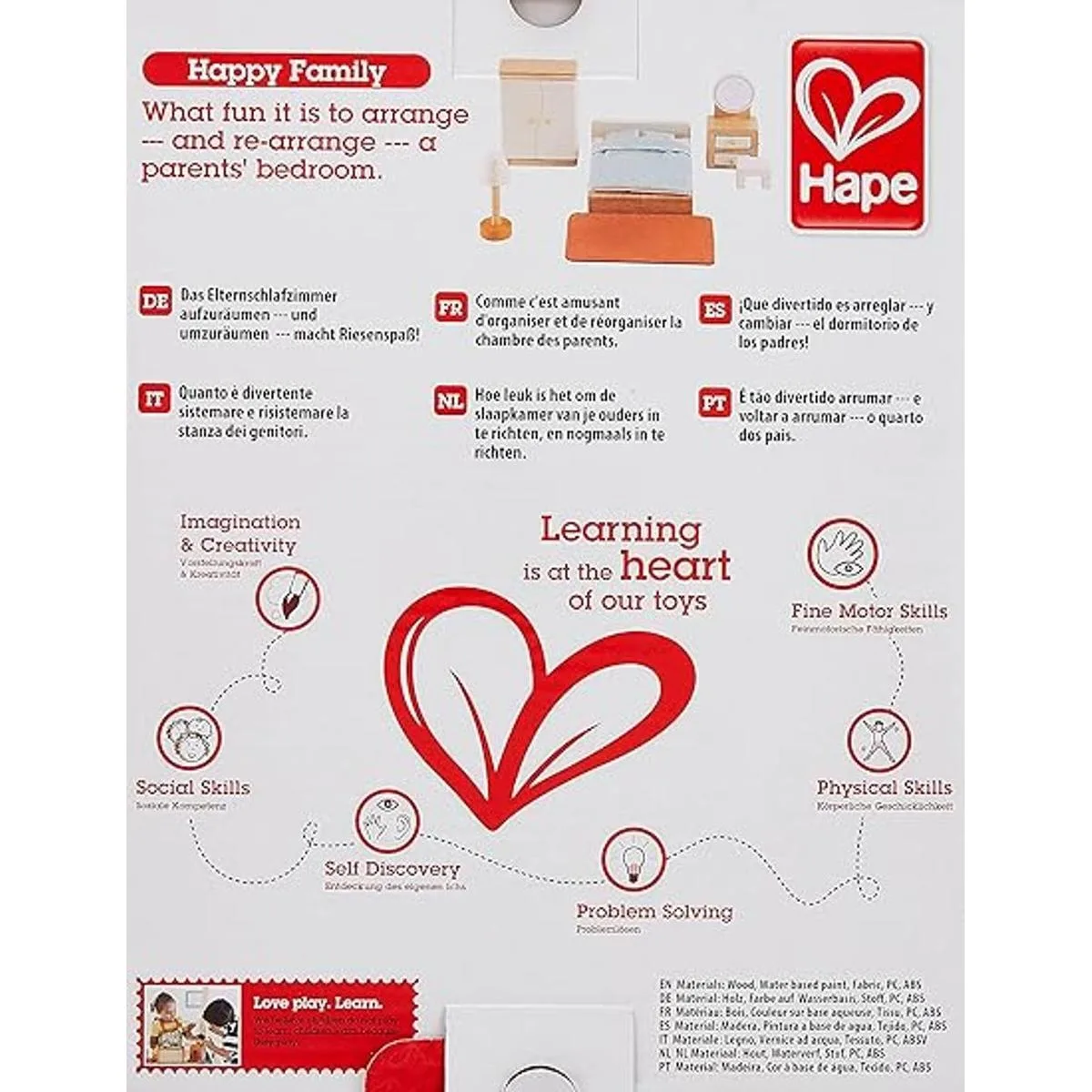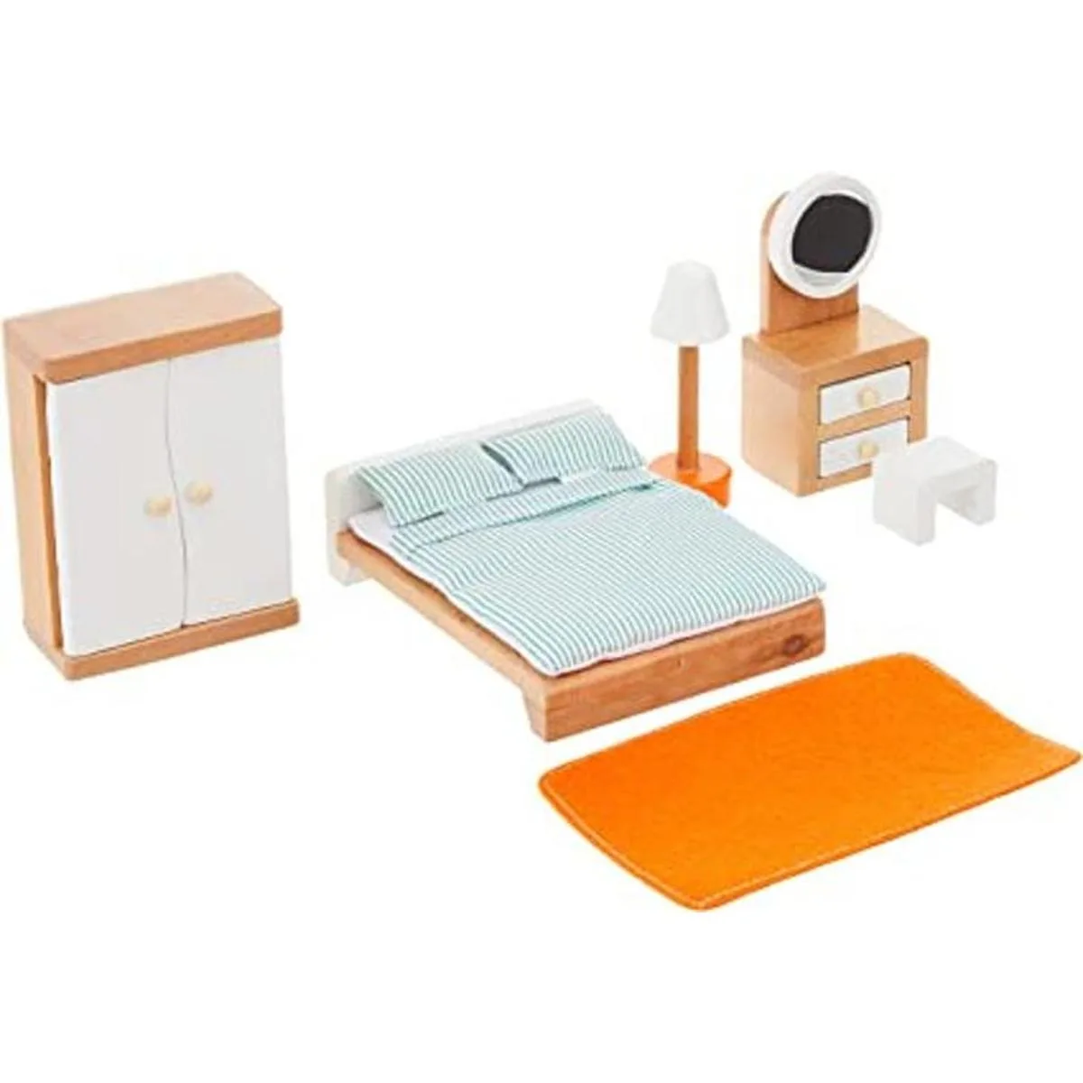 Hape Juego de muebles de casa de muñecas de madera para dormitorio principal