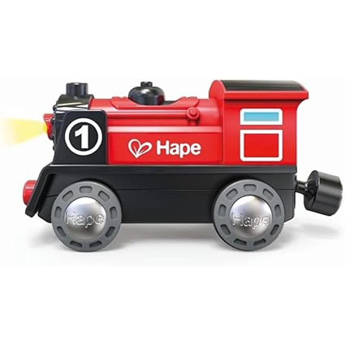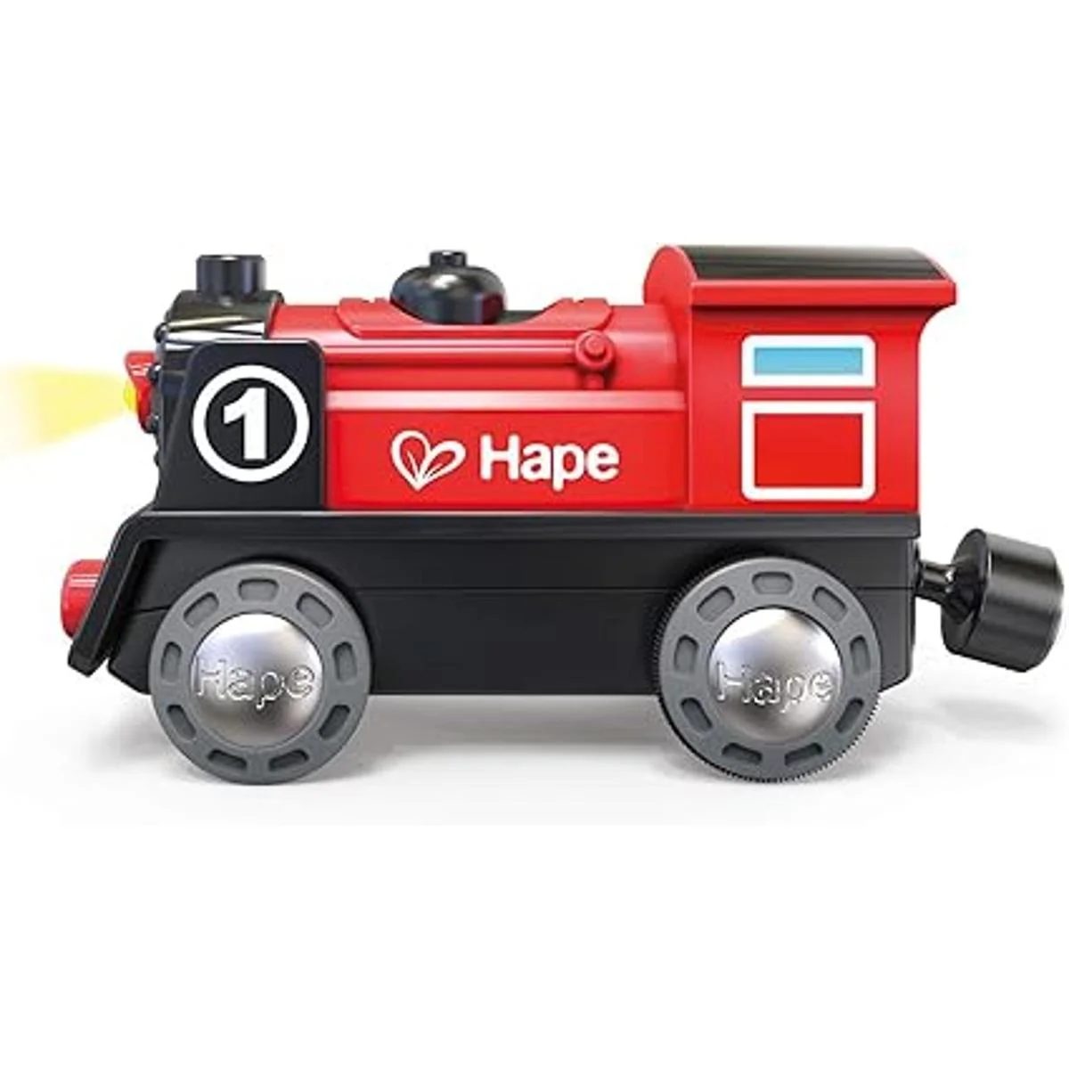 Hape Motor de ferrocarril de madera número 1 para niños, rojo, blanco, negro, azul, L 3.7, ancho 1.3, altura 1.9 pulgadas