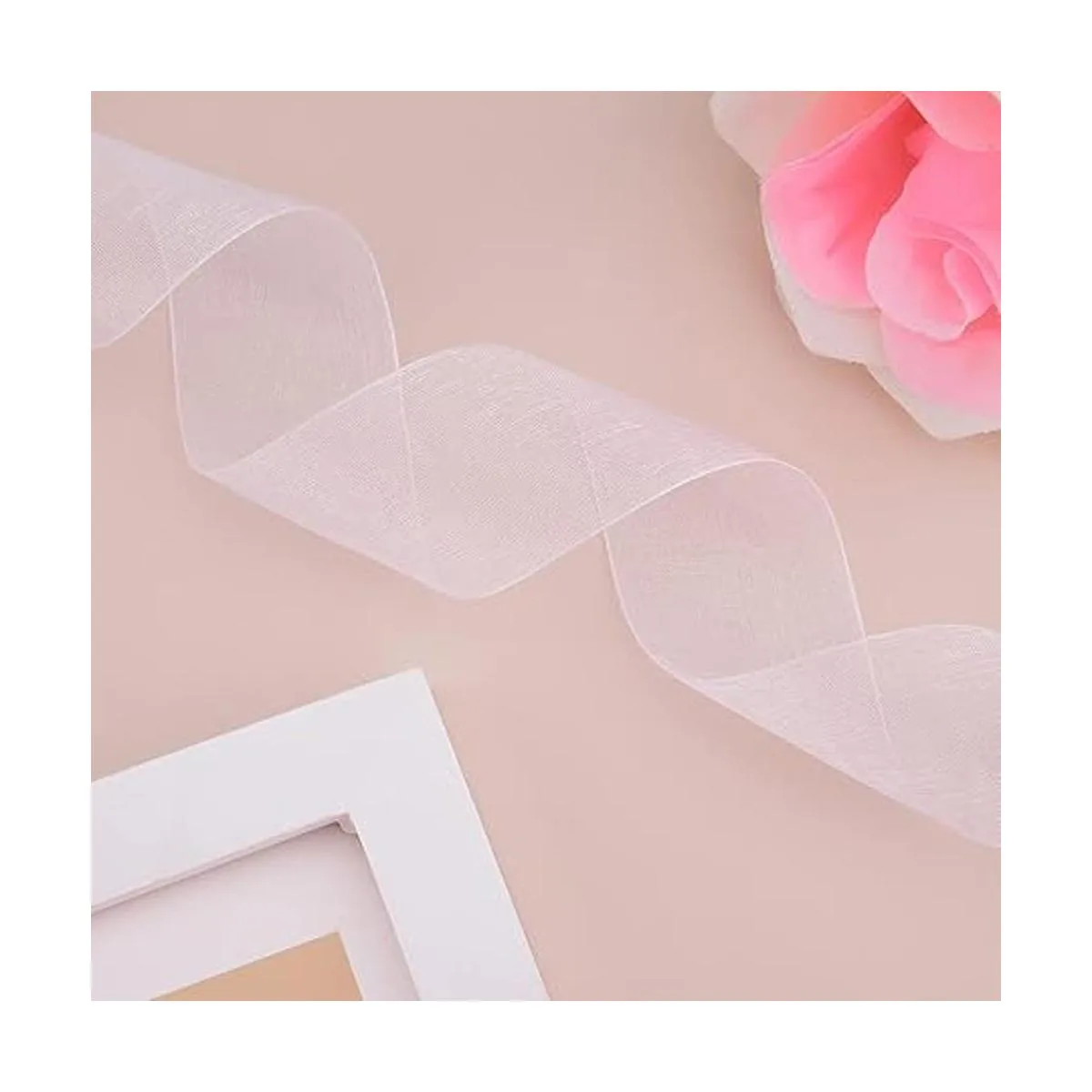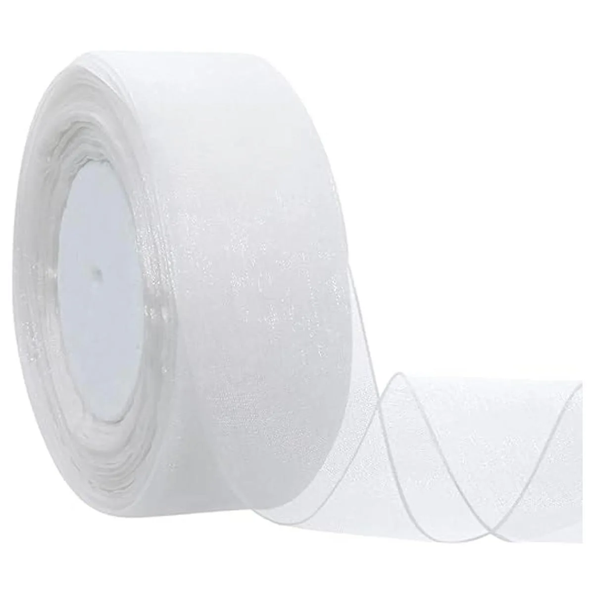 Hapeper Cinta de organza transparente de 112 pulgadas para envolver regalos, decoración de fiestas, 50 yardasrollo blanco