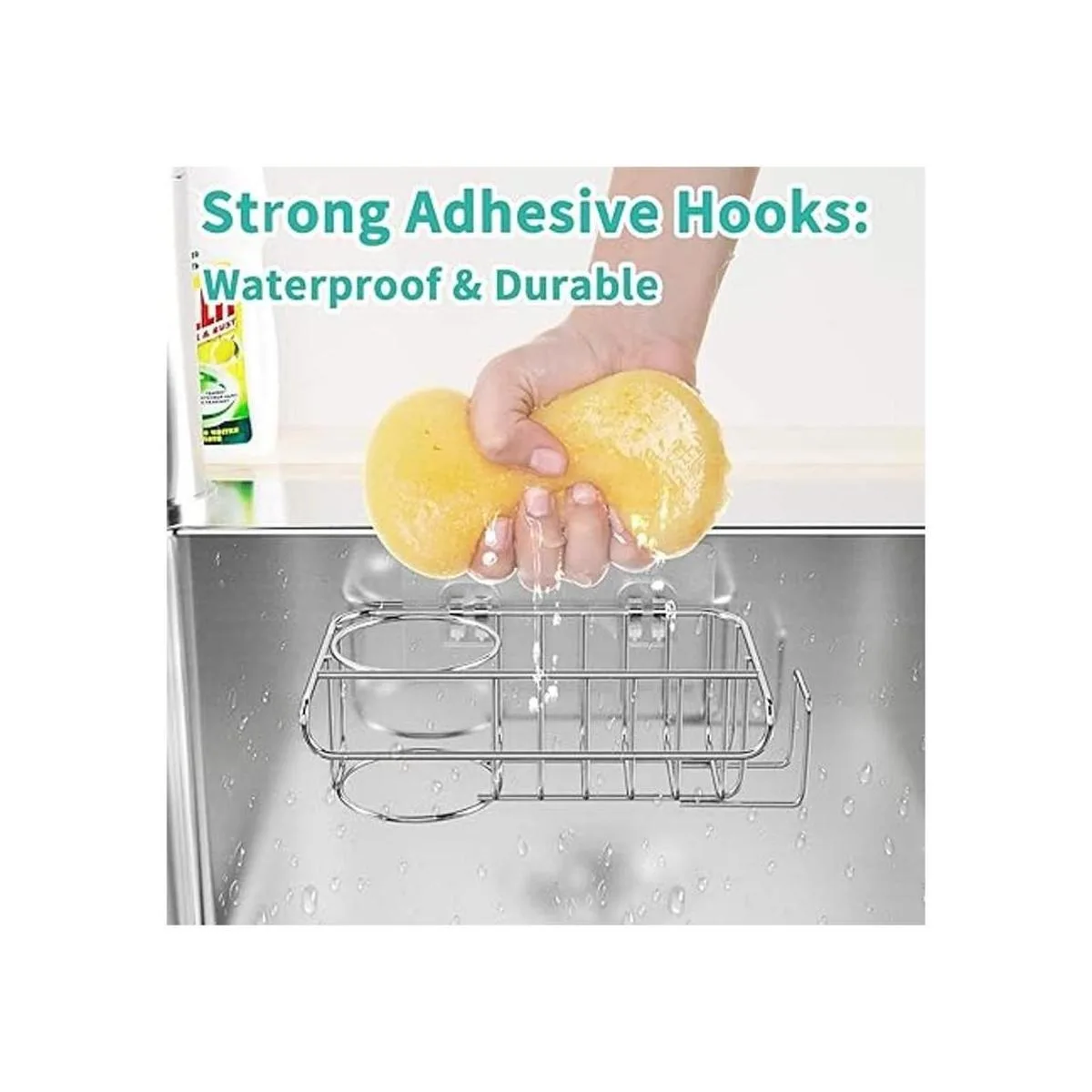 Diseño de diseño y diseño elegante 1 soporte de esponja para fregadero de cocina, 2 ganchos adhesivos. Tamaño total: 8.4 pulgadas incluyendo longitud del soporte del tapón del fregadero x 4.3 x 2.6 pulgadas, adecuado para el fregadero de cocina estándar en casa o caravana. Ten en cuenta que ofrecemos garantía de calidad del producto, no dudes en ponerte en contacto con nosotros en cualquier momento si no estás satisfecho. Consejo: puedes utilizar un secador de pelo para calentar el adhesivo instalado y luego arrancarlo.