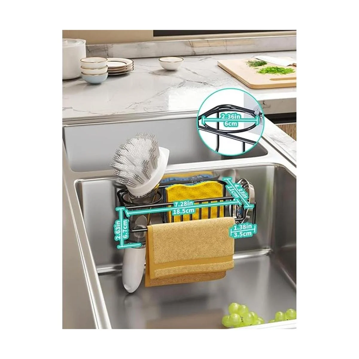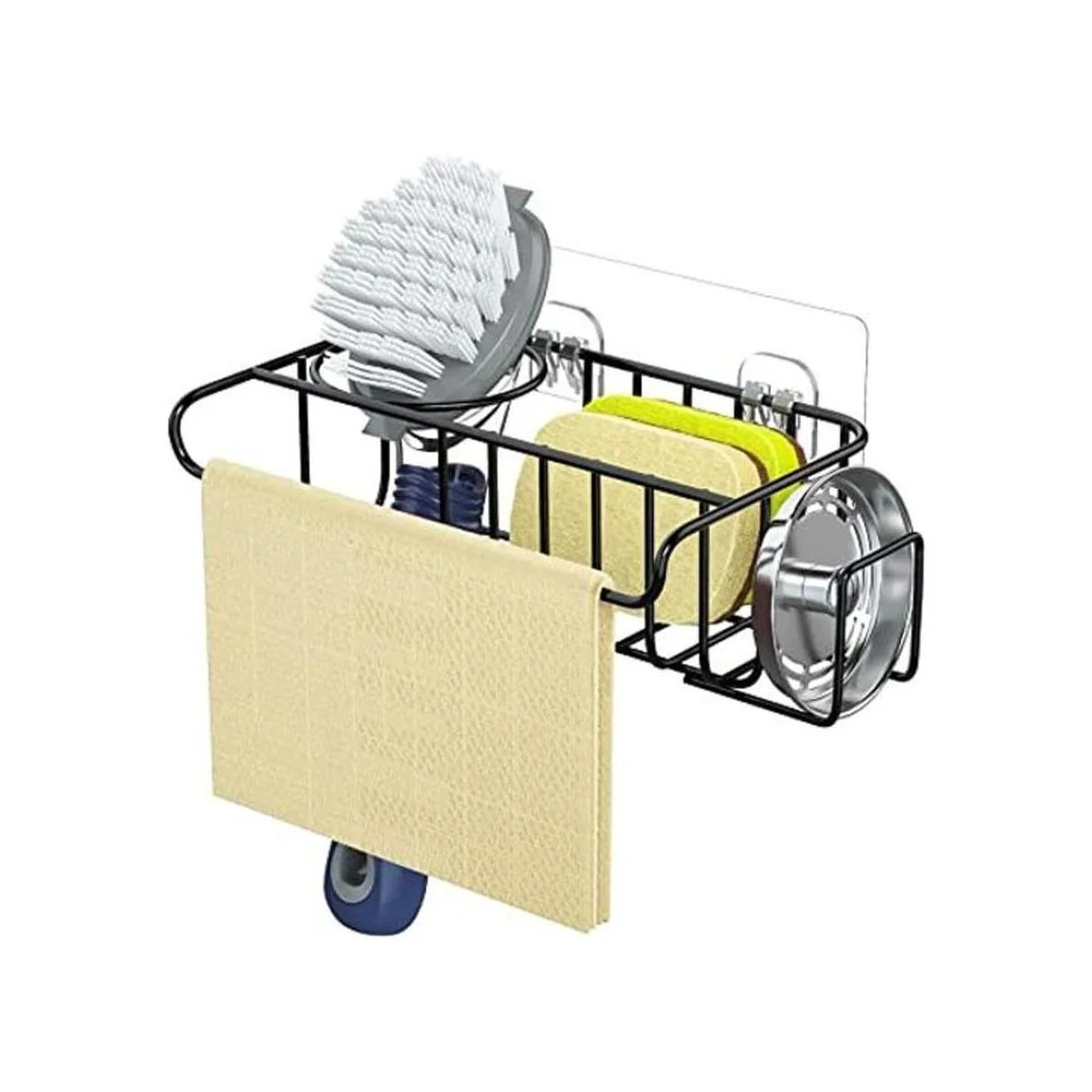 Diseño de alta calidad A diferencia del soporte de esponja simple normal en el mercado, este organizador de fregadero de cocina se puede utilizar para almacenar esponja, jabón, cepillos, toallas, colador de fregadero, tapón de fregadero, exfoliante y cepillos de uñas, etc.