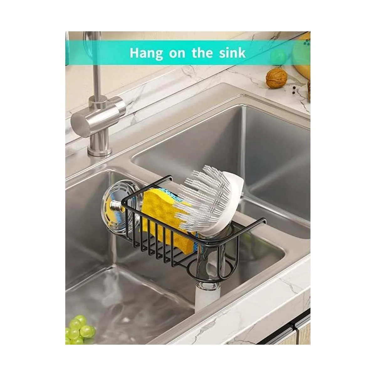 HapiRm SUS304 Soporte para esponja adhesiva 4 en 1, soporte para cepillo de acero inoxidable colgador de tela para platos jabonera soporte para tapón de fregadero con 2 formas de instalación, sin perforación, negro