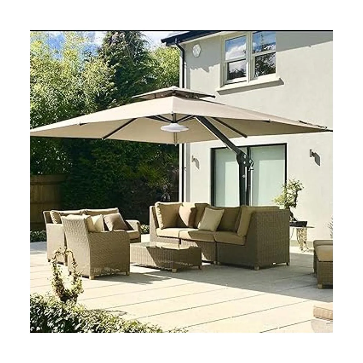 Happetite Luces de paraguas con control remoto, recargables con pilas, luces voladizas para patio, color blanco cálido con 3 modos de brillo, para sombrilla de patio en exteriores y jardín blanco