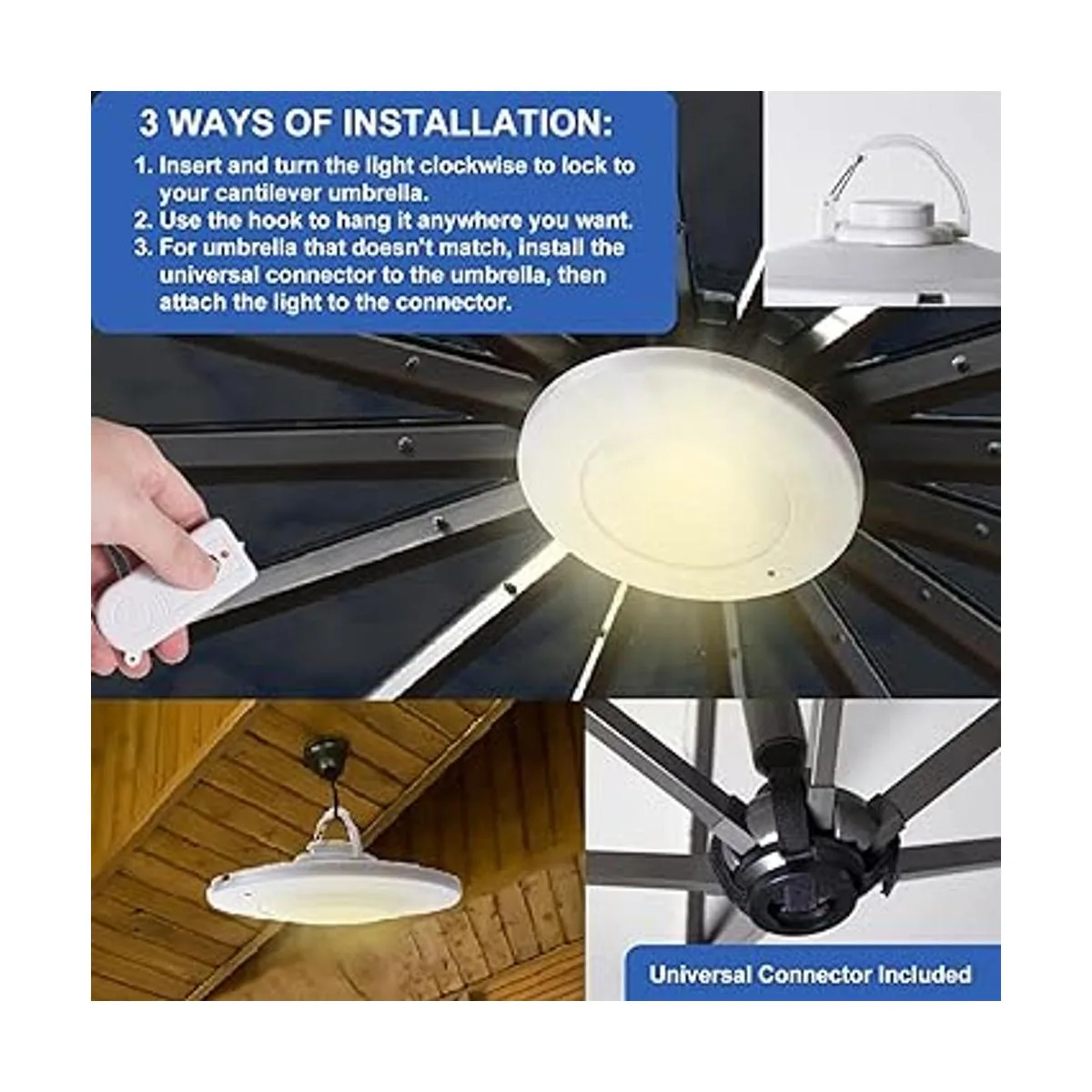Ampliamente utilizado: más que luz de sombrilla de patio compensada, también son ideales como luces de tienda de campaña, luces de emergencia y luces de trabajo; adecuado para decoración de patio al aire libre, decoración de piscina, ideal para camping, barbacoa, jardín, balcón y tu otro tiempo de ocio nocturno.