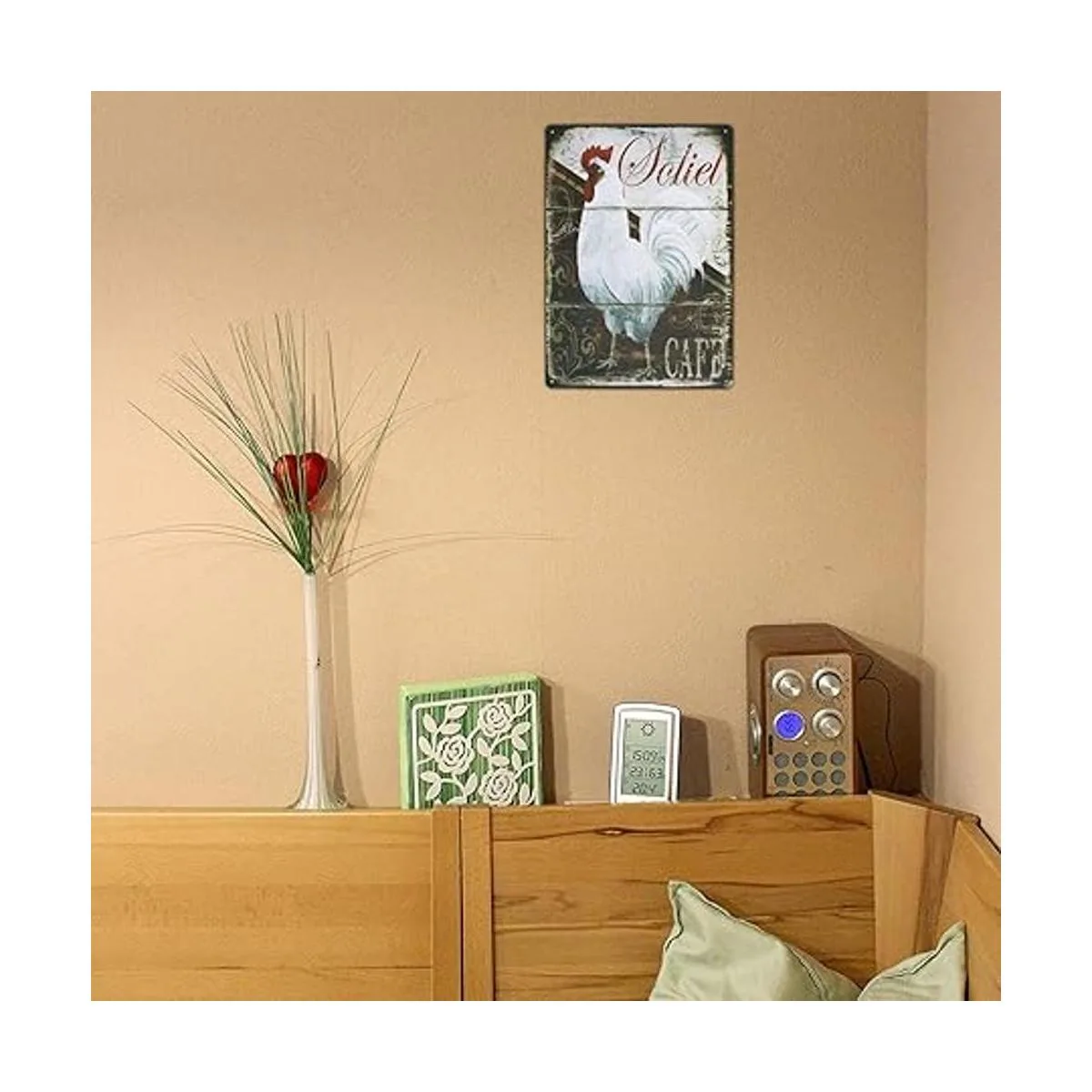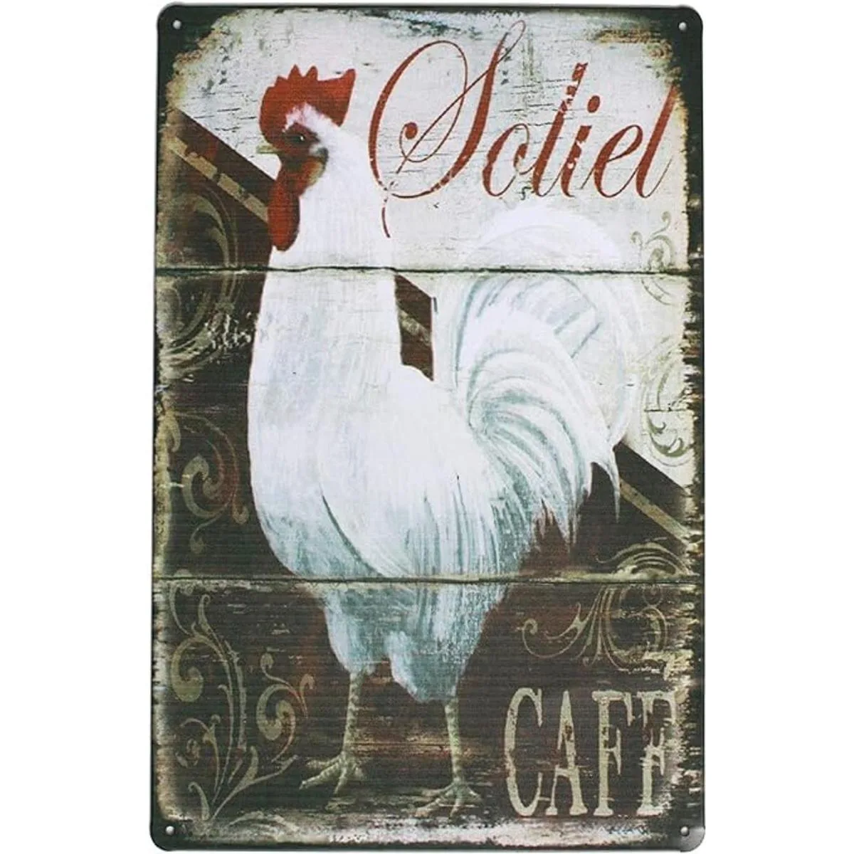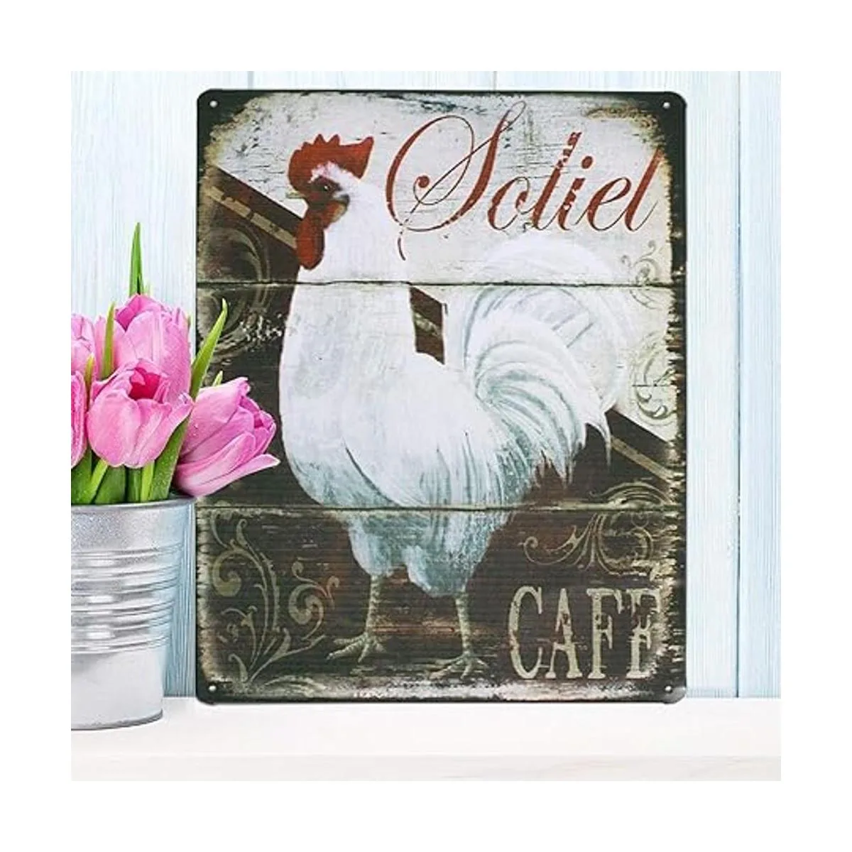 Happy gallinas, gallo metal Tin Sign, estilo vintage adorno de pared café y decoración de la barra, tamaño 9.4 x 9.4 inch