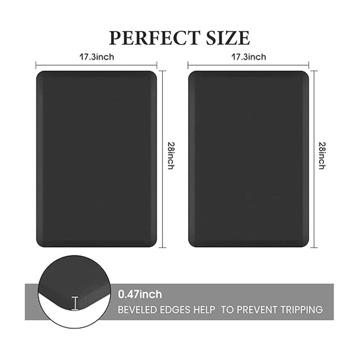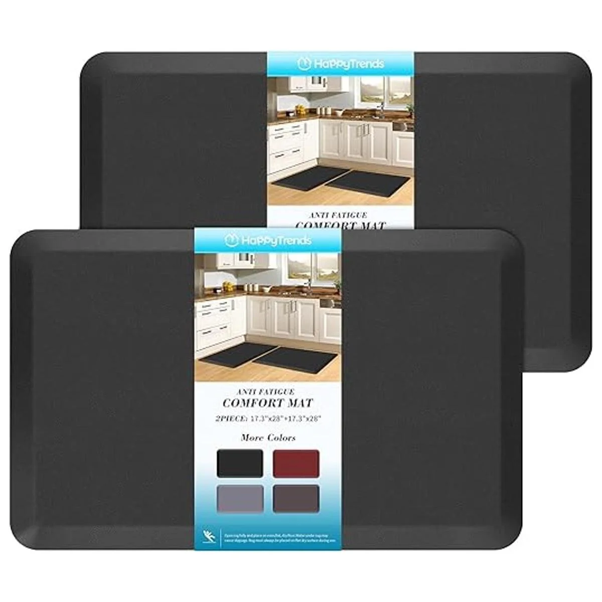 HappyTrends 2 alfombrillas de cocina acolchadas, antifatiga, ergonómicas, resistentes y cómodas, impermeables, antideslizantes, para el hogar, oficina, lavandería, color negro
