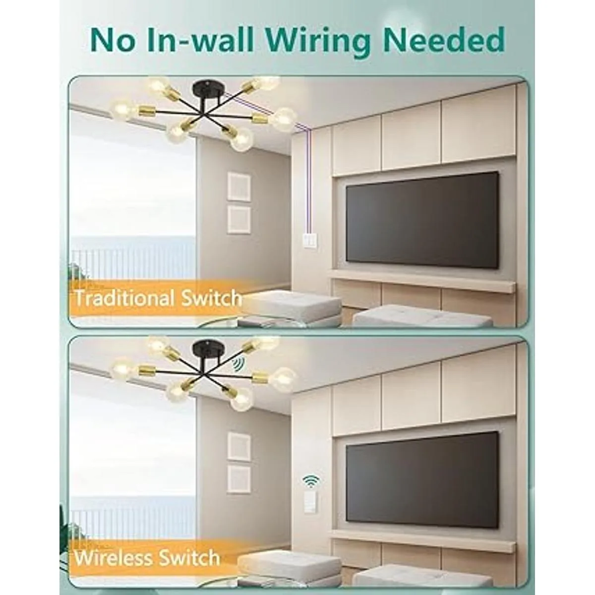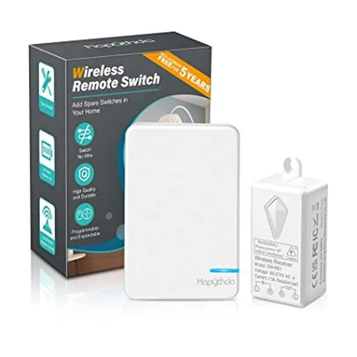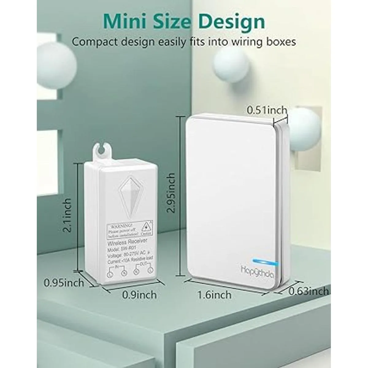HAPYTHDA Interruptor de luz inalámbrico, no requiere cableado en la pared, interruptor de luz de control remoto, accesorio de interruptor inalámbrico impermeable para luz LED, luces de techo, ventiladores, rango de radiofrecuencia de 1300 pies, programable