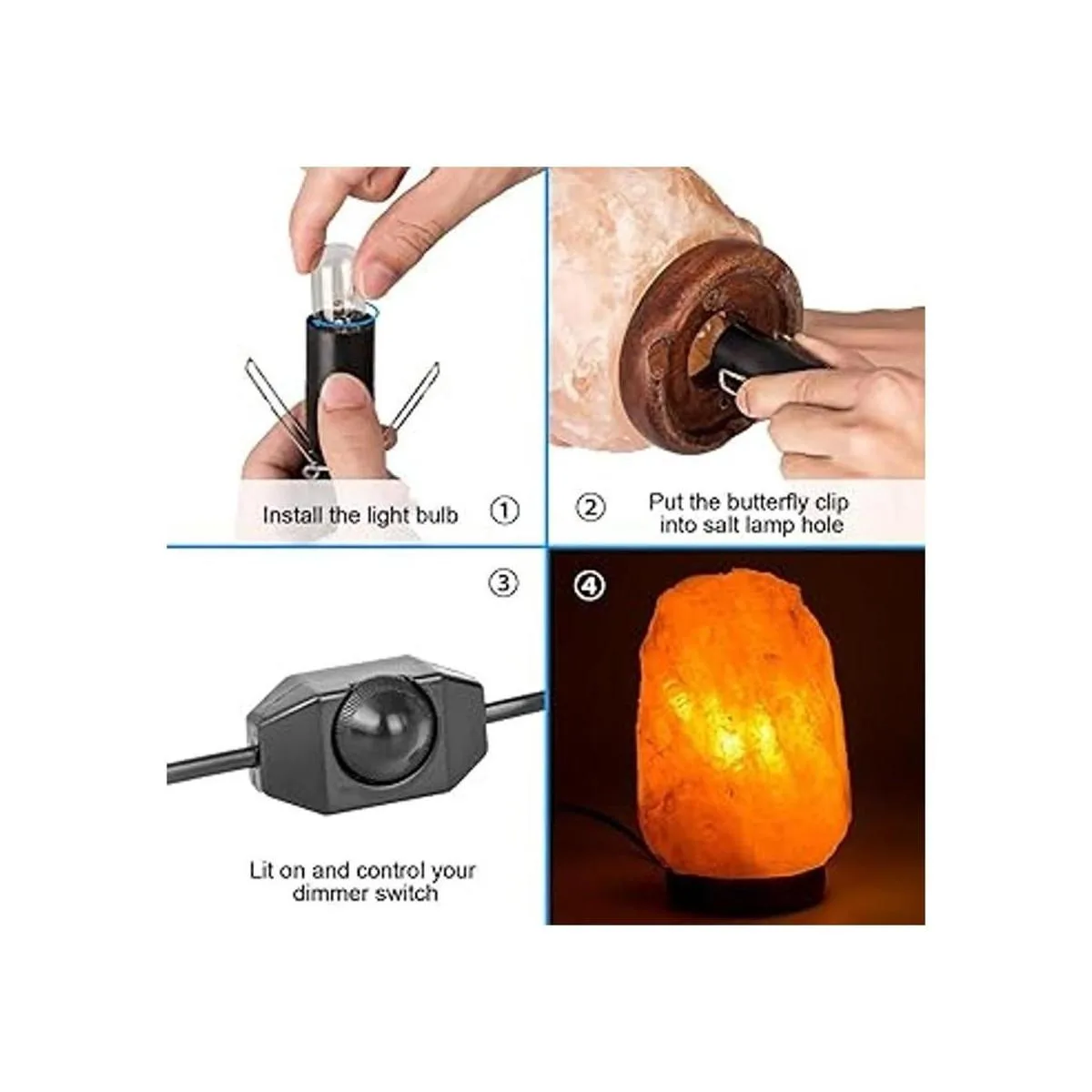 Interruptor de control variable: cable original con regulador de intensidad que puede ayudarte a controlar el brillo de la lámpara, cable diseñado especialmente para lámparas de sal del Himalaya también se puede utilizar para otras lámparas, cable blanco puede buscar: B07BMSL5FD