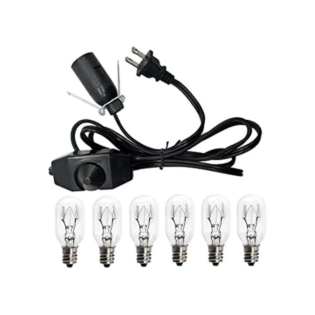 Haraqi Cable de lámpara de sal y bombillas, cable de repuesto de lámpara de sal del Himalaya con interruptor de atenuación, bombilla de repuesto original con certificación UL para lámpara de roca de sal con 6 bombillas E12 de 25 W