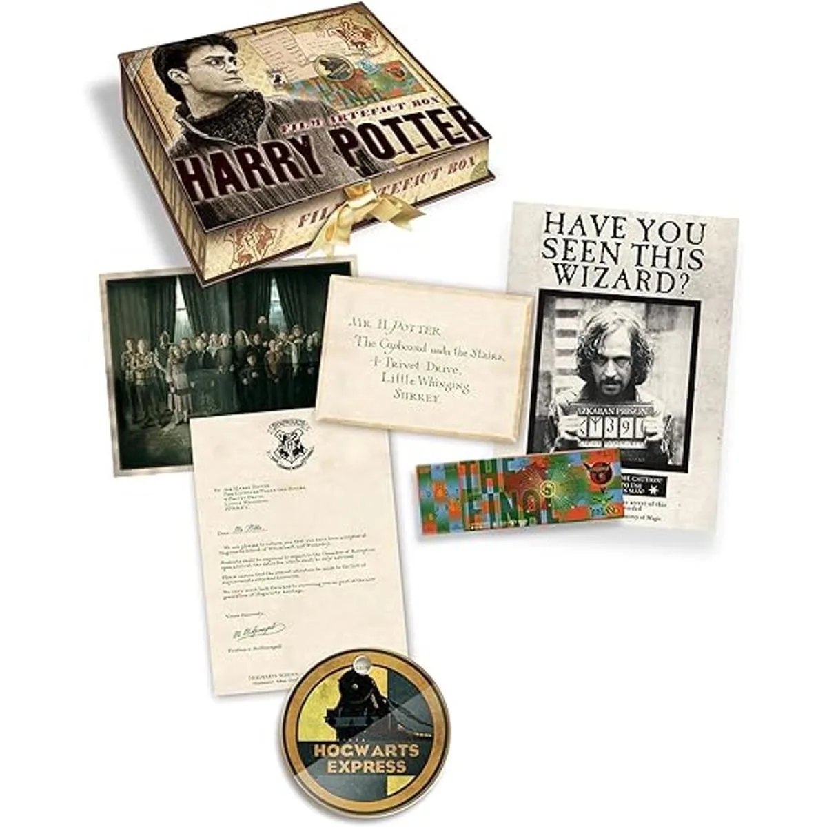 El juego incluye Hogwarts aceptación Carta, Sirius Negro querido poster, copa del mundo de Quidditch billete, Lily Potter