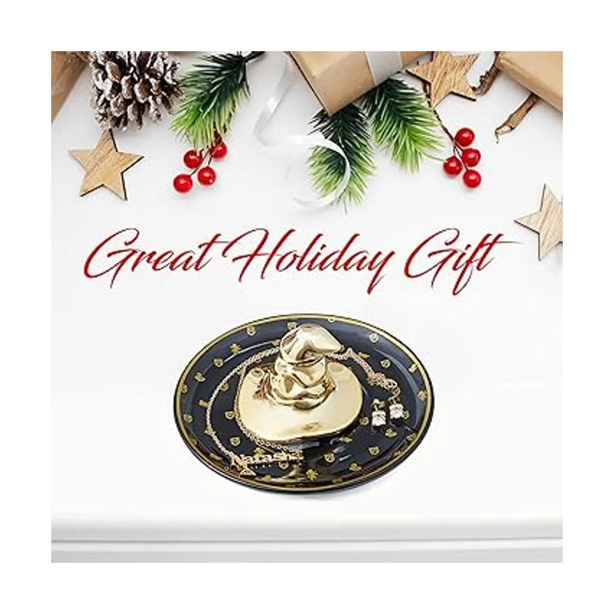 Exquisitamente elaborado: la bandeja de cerámica esmaltada de alta calidad solo para uso decorativo añade un toque sobrenatural a mesitas de noche, tocadores, fregaderos, dondequiera que un anillo o plato de joyería sea práctico