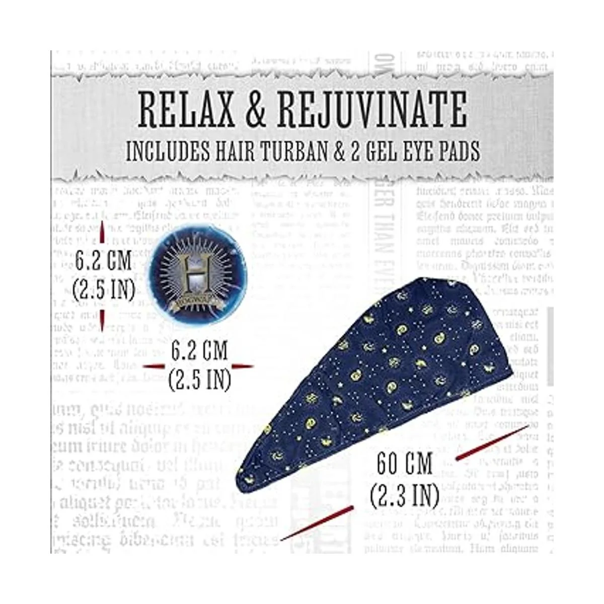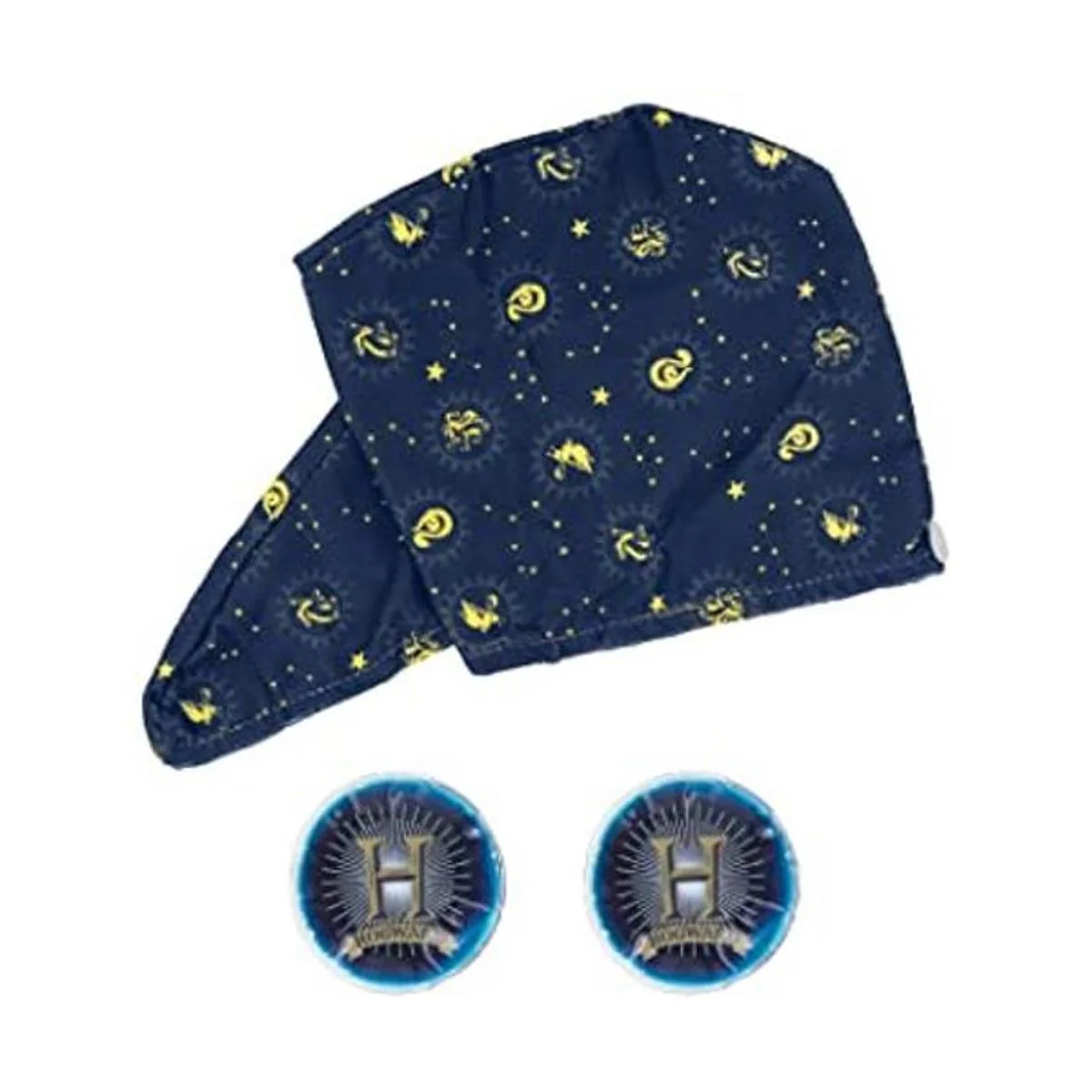 Estilo Hogwarts: el turbante de pelo de secado rápido en este conjunto está decorado con un diseño inspirado en las constelaciones que incorpora las cuatro casas escolares de Gryffindor, Slytherin, Ravenclaw y Hufflepuff en un rico color dorado sobre un fondo azul marino