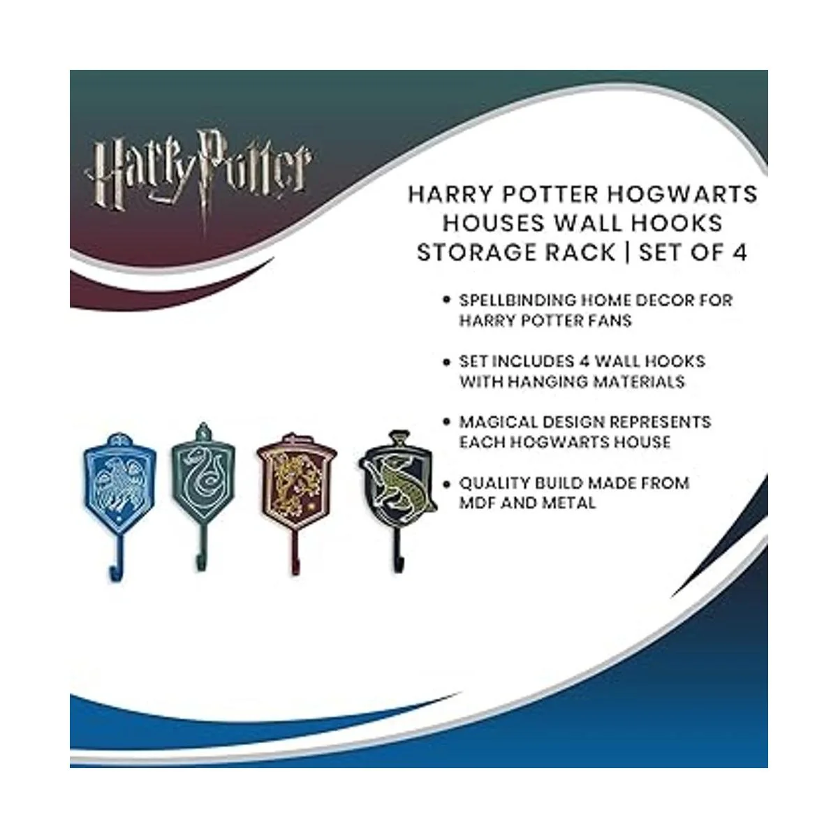 Wizarding World Essentials: crea tu propio espacio mágico con estos ganchos de pared de Harry Potter Hogwarts Houses con licencia oficial. Esta decoración de pared temática es divertida para que los Potterheads de todas las edades cuelguen en su habitación.