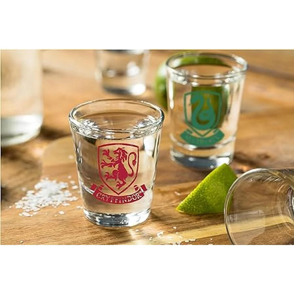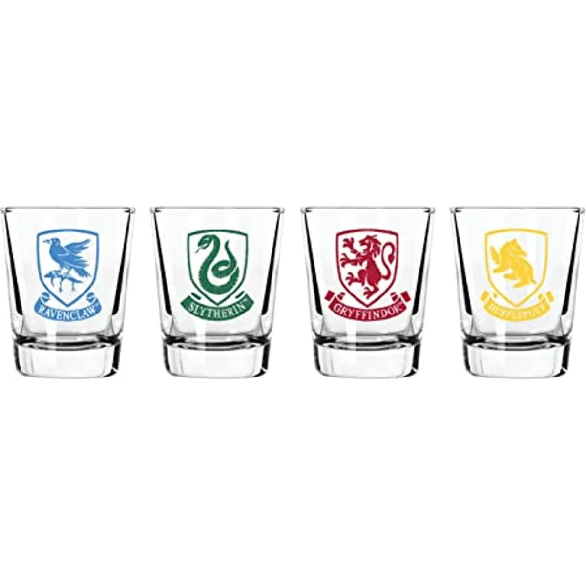 Harry Potter Juego de vasos de chupito Capacidad de 2 onzas Juego de 4 vasos Gryffindor, Slytherin, Hufflepuff, Ravenclaw