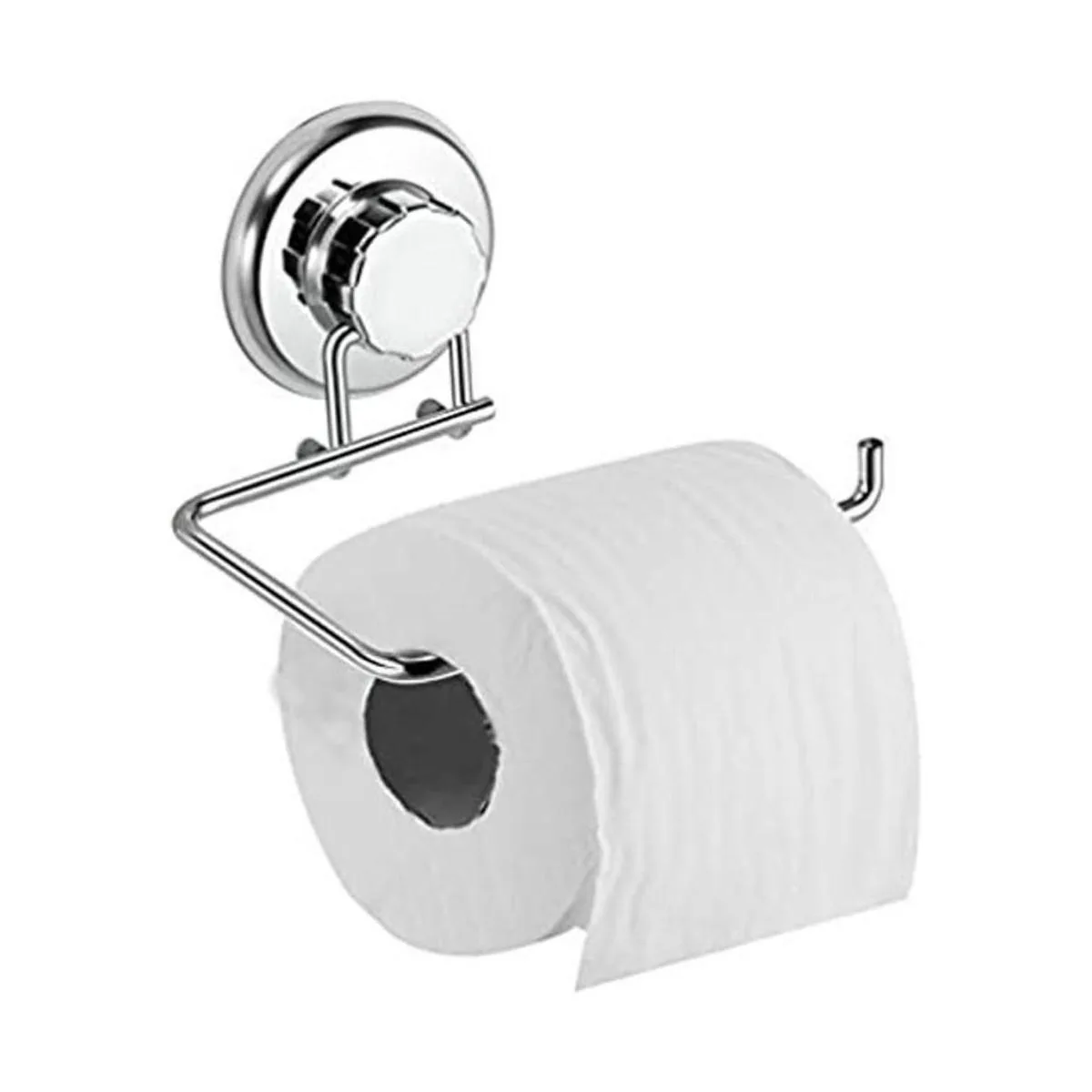 HASKO accessories Potente soporte de papel higiénico con ventosa al vacío, dispensador de rollos de papel higiénico de acero inoxidable para montaje en pared, para baño y cocina, se puede montar en una superficie lisa y plana limpia cromado