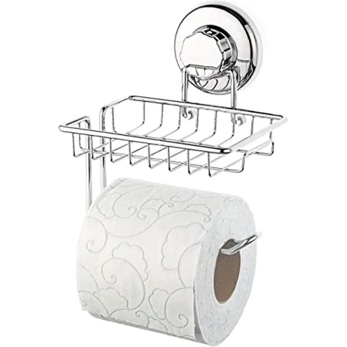HASKO Accessories Soporte de papel higiénico con ventosa con estante, acero inoxidable SS304, soporte para rollo de papel higiénico, dispensador de rollo de papel higiénico para baño y cocina cromado