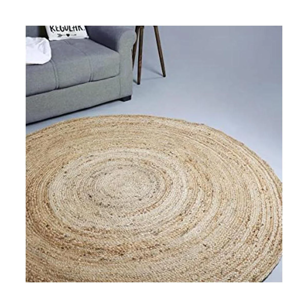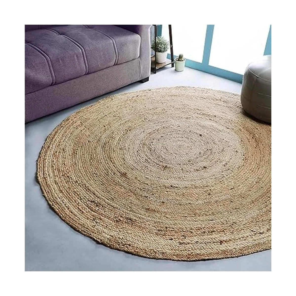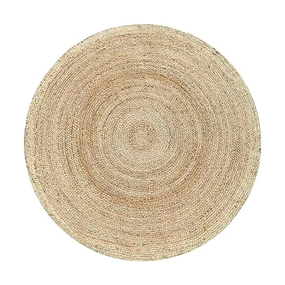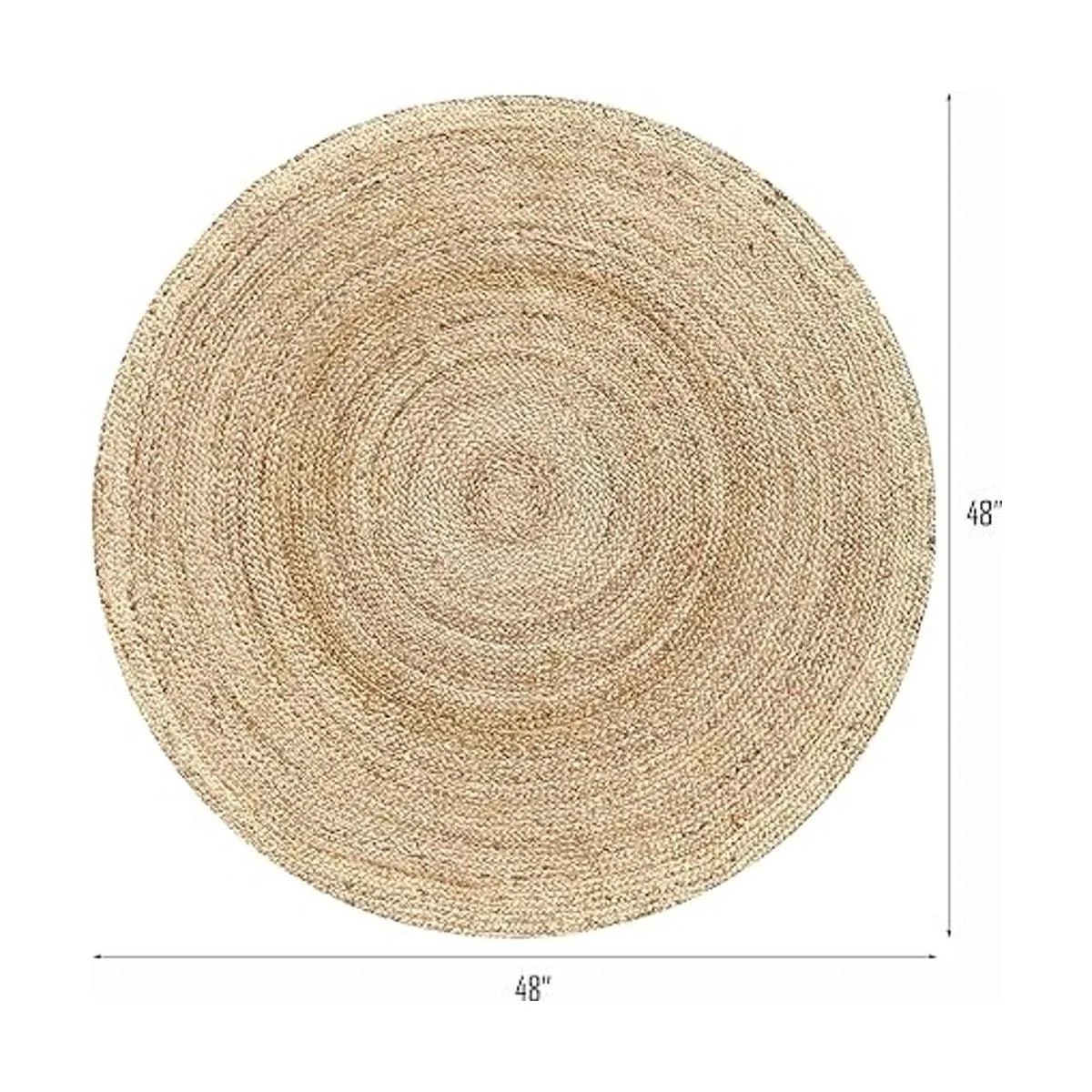 Hausattire Alfombra trenzada de yute tejida a mano, redonda, 4 pies, natural, reversible, para sala de estar, cocina, 4 pies redondos