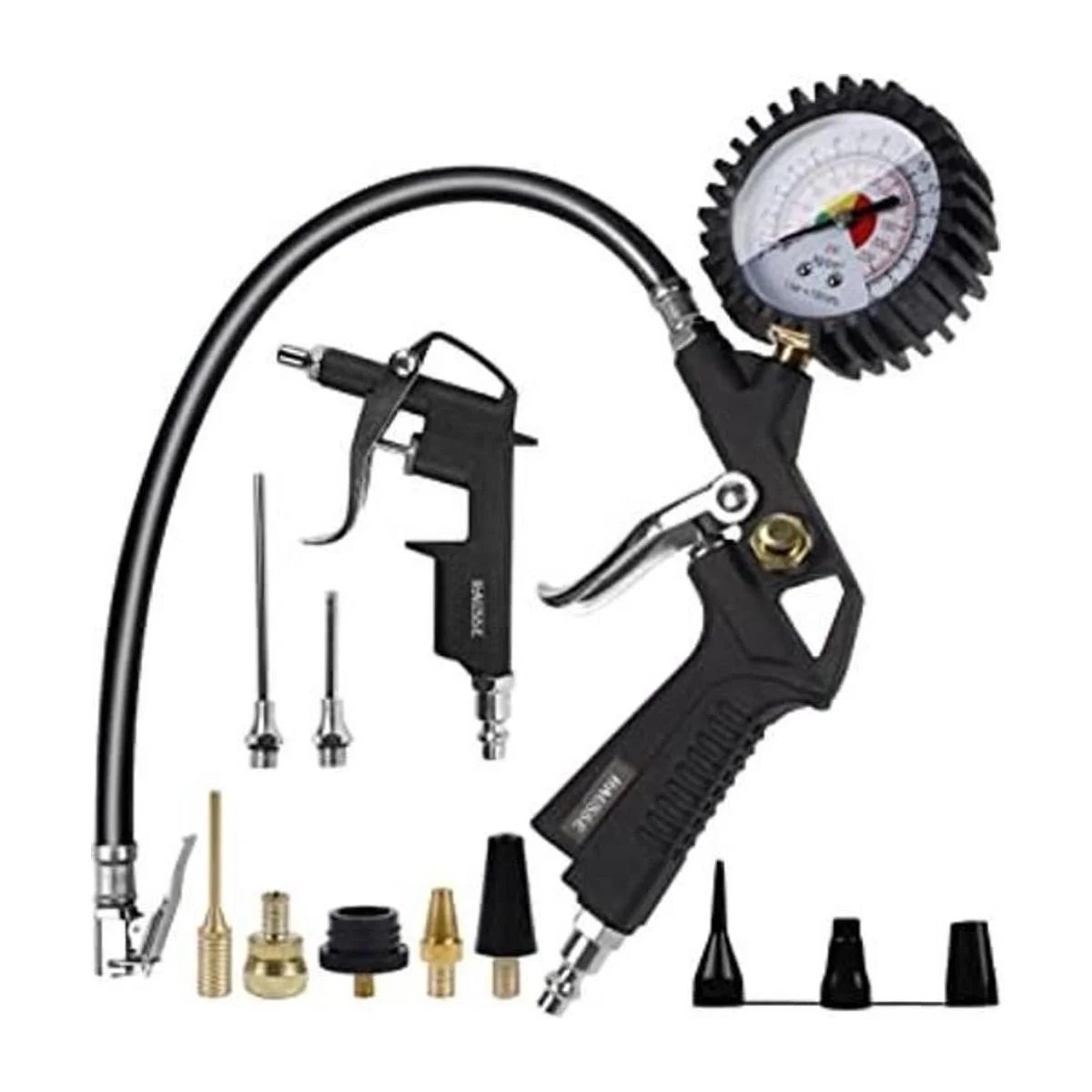 Hausse Kit de accesorios de compresor de aire resistente, accesorios de pistola de soplado de aire y manguera de aire, kit de herramientas de aire NPT de 14 pulgadas con calibre de inflador de neumáticos de manguera de goma de 116 PSI