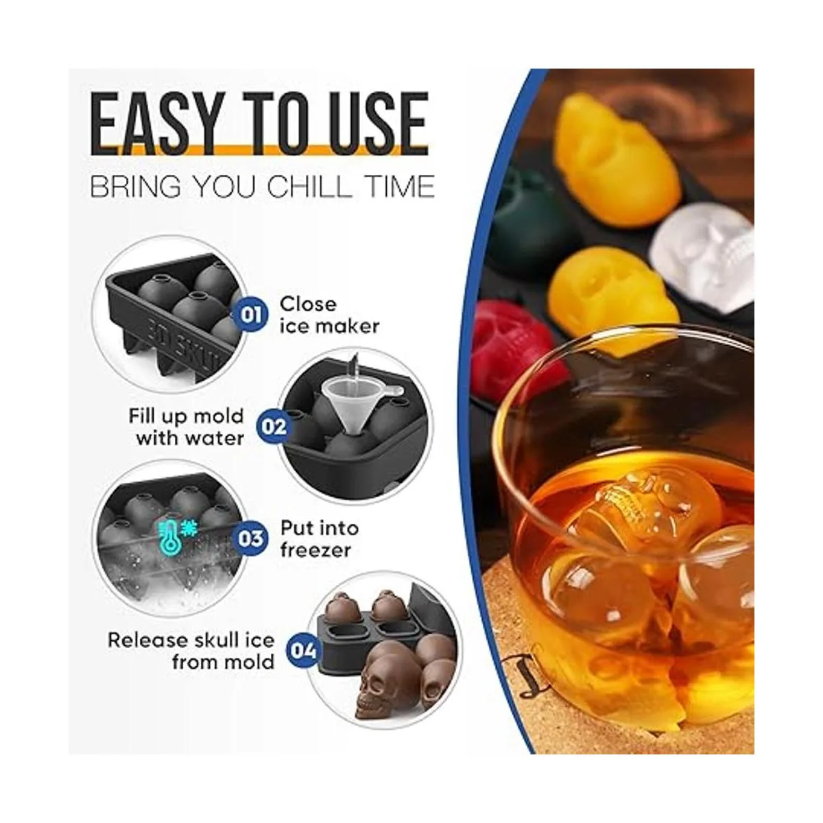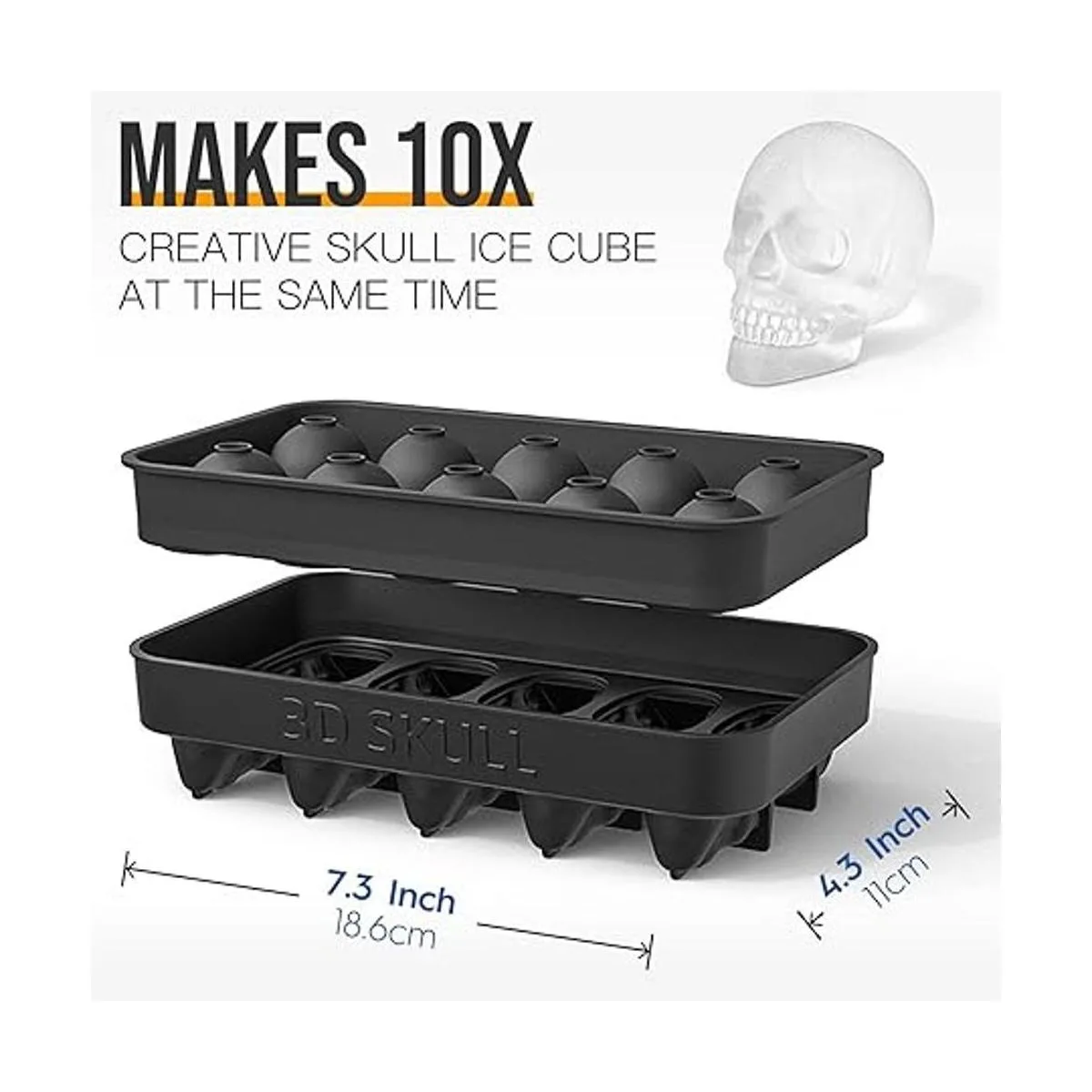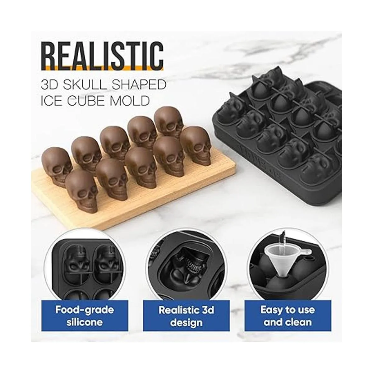 HAVOER Molde de cubo de hielo de calavera 3D, molde flexible de silicona para hacer hielo para whisky, bandeja de cubitos de hielo de calavera de 10 cavidades con embudo, molde de silicona de calavera para hornear, chocolate, caramelo y resina