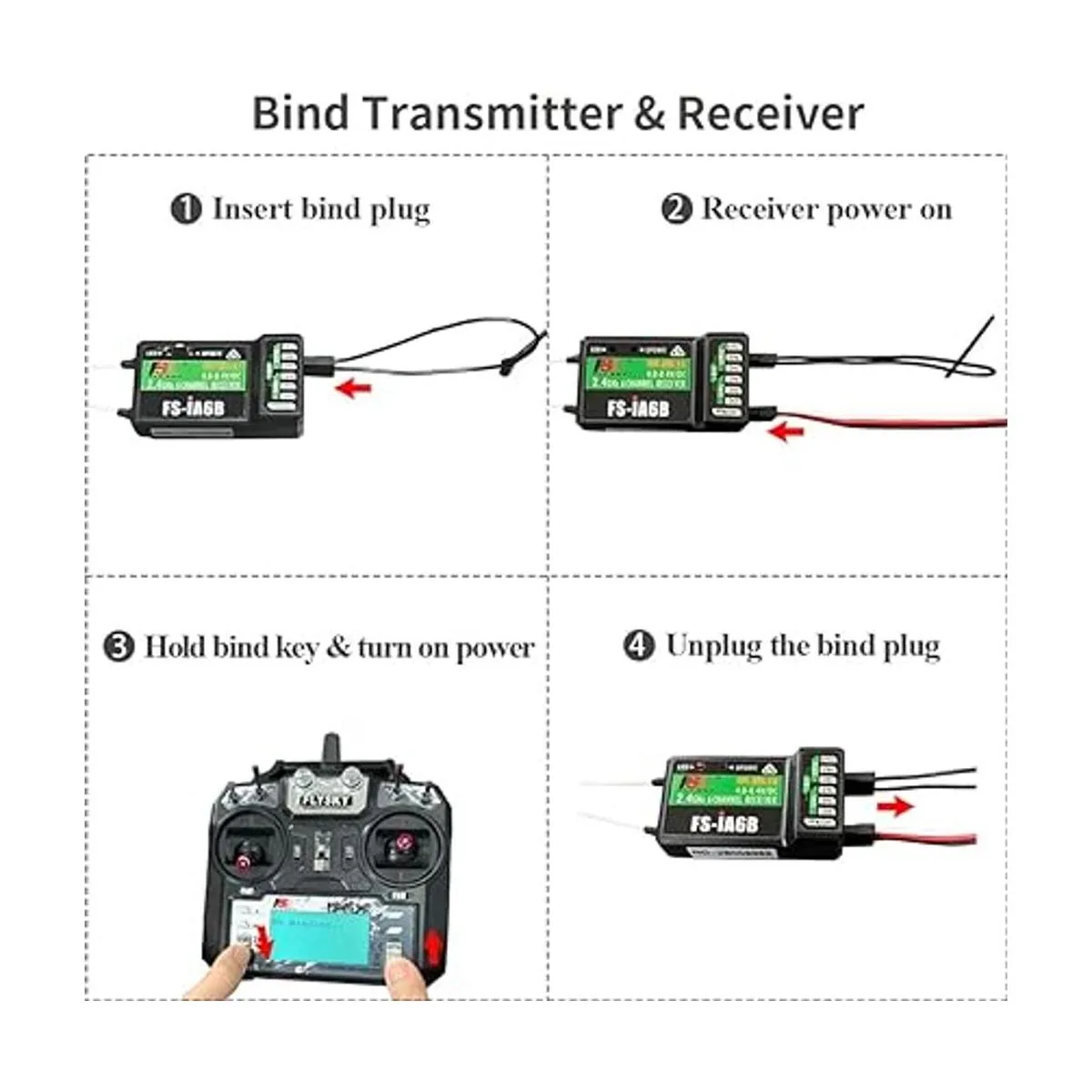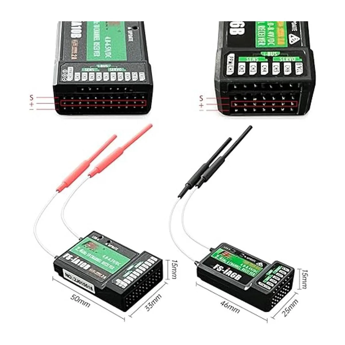 PWM y PPM: FSiA6B tiene 6 canales PWM y modo PPM. PPM lo hace adecuado para varios tipos de vehículos aéreos multieje.