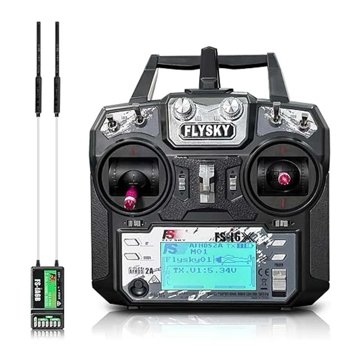 HAWKS WORK Flysky FSi6X Transmisor de 10 canales, controlador RC de 2.4 GHz con receptor FSiA6B para dron multirotor RC avión helicóptero planeador barco