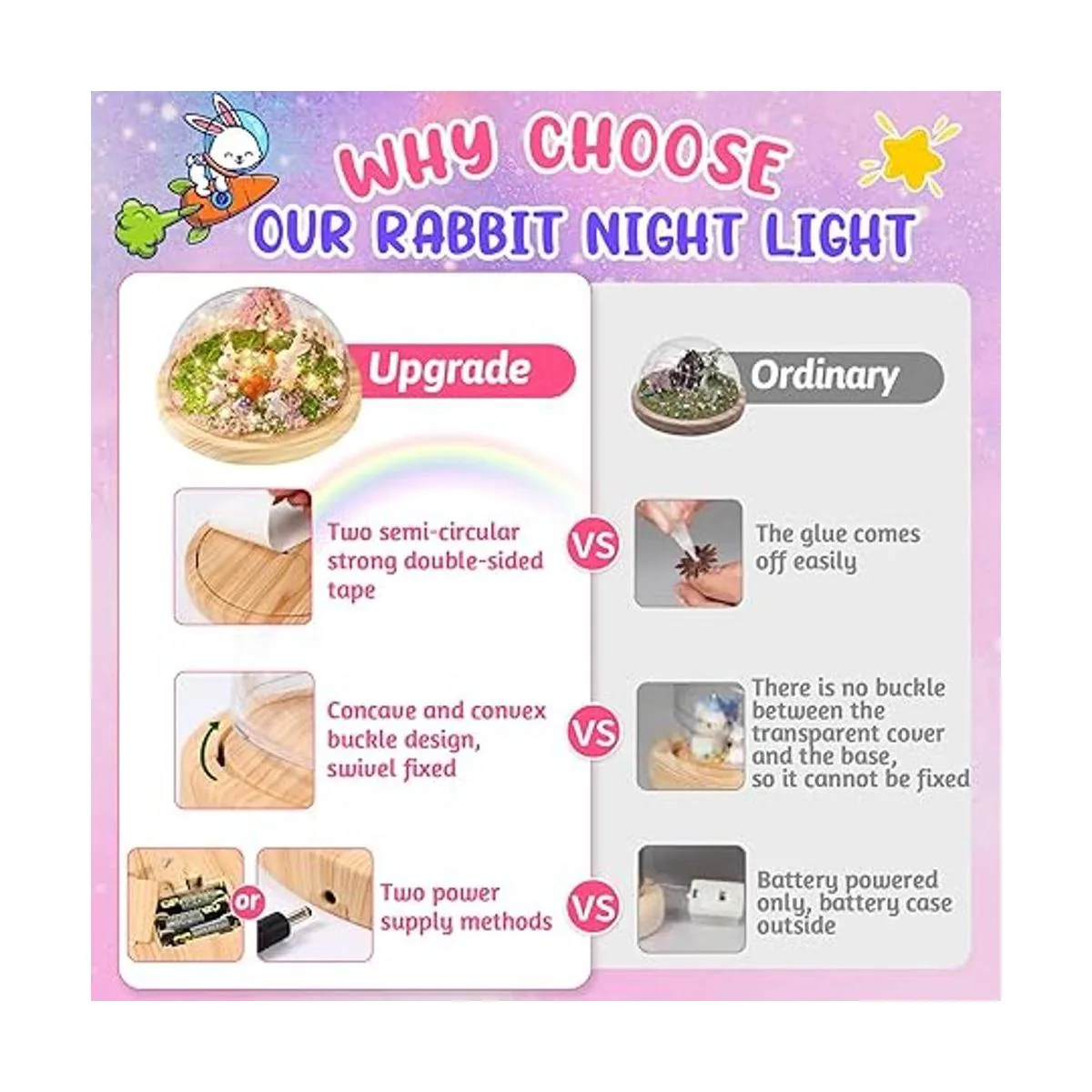 Haz tu propia luz nocturna mágica: los kits de bricolaje para niños contienen todo lo que necesitas para hacer luz nocturna de conejo, los niños pueden personalizar la luz nocturna de cualquier manera que quieran, y cuando el proyecto de luz nocturna esté completo, se sentirán muy orgullosos de sí mismos y se maravillarán con la belleza y la magia de la luz.
