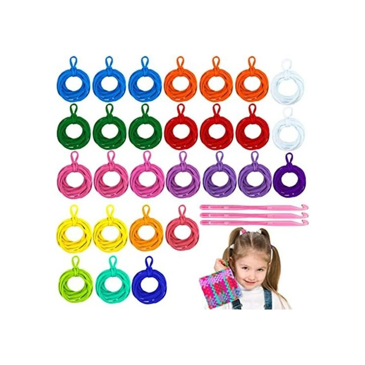 Hazms 293 trabillas para agarradera de telar de 7 pulgadas para niños, tejido de manualidades con 3 ganchos de ganchillo para manualidades, suministros compatibles con telar de tejido de 7 pulgadas