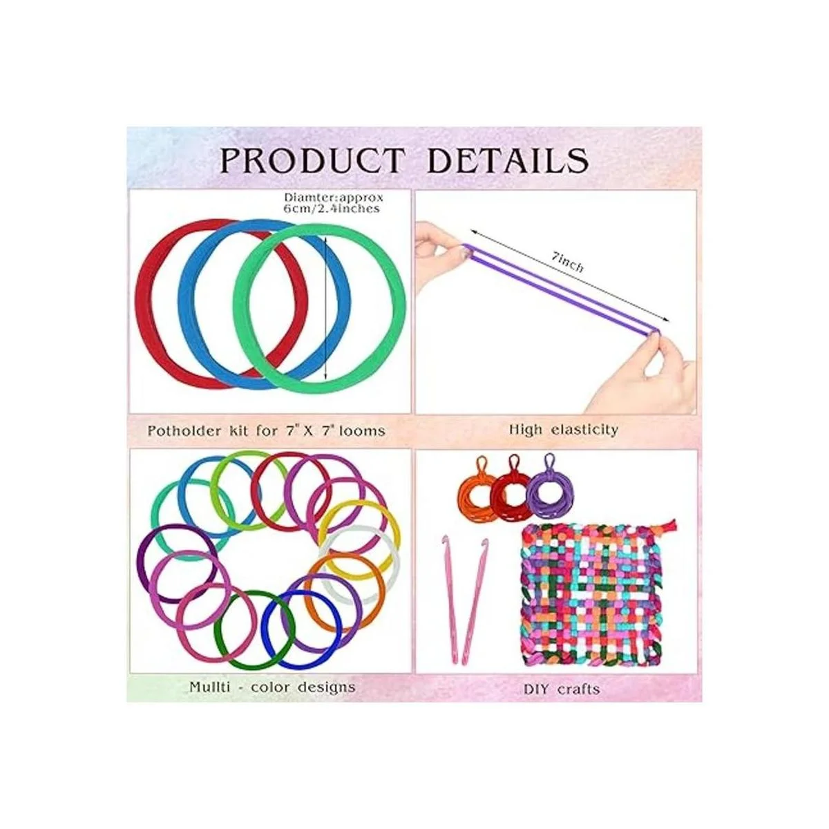 El paquete incluye: hay 293 trabillas para agarraderas de telar y 3 ganchos de ganchillo en total, la cantidad suficiente para satisfacer tus diversas necesidades en la vida diaria
