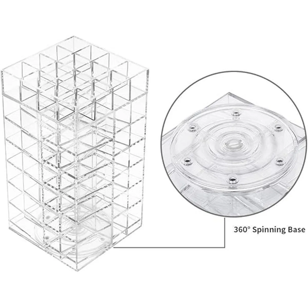 Capacidad: hasta 64 pintalabios mantener tus 16 ranuras. el compartimento inferior incluye 48 de compartimiento de labios en la parte superior para todas sus colecciones de lápiz labial; Tamaño total: 4.724.729.05; Material: Premium acrílico transparente.