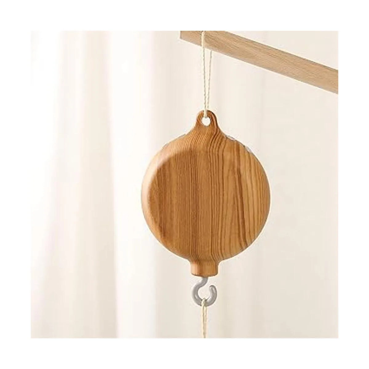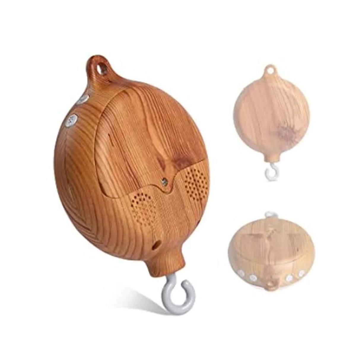 Diseño único: diseño de madera de imitación: será adecuado para más móviles de guardería, como móviles de cuna de madera. Funciona con 2 pilas AA pilas no incluidas. Material: ABS sin contaminación.