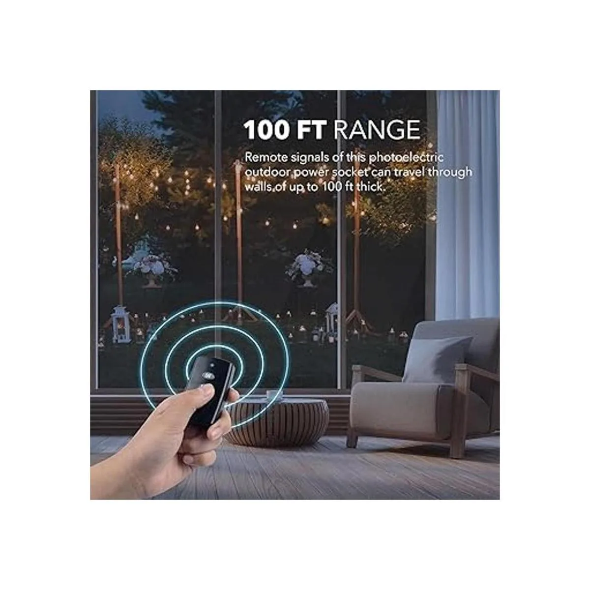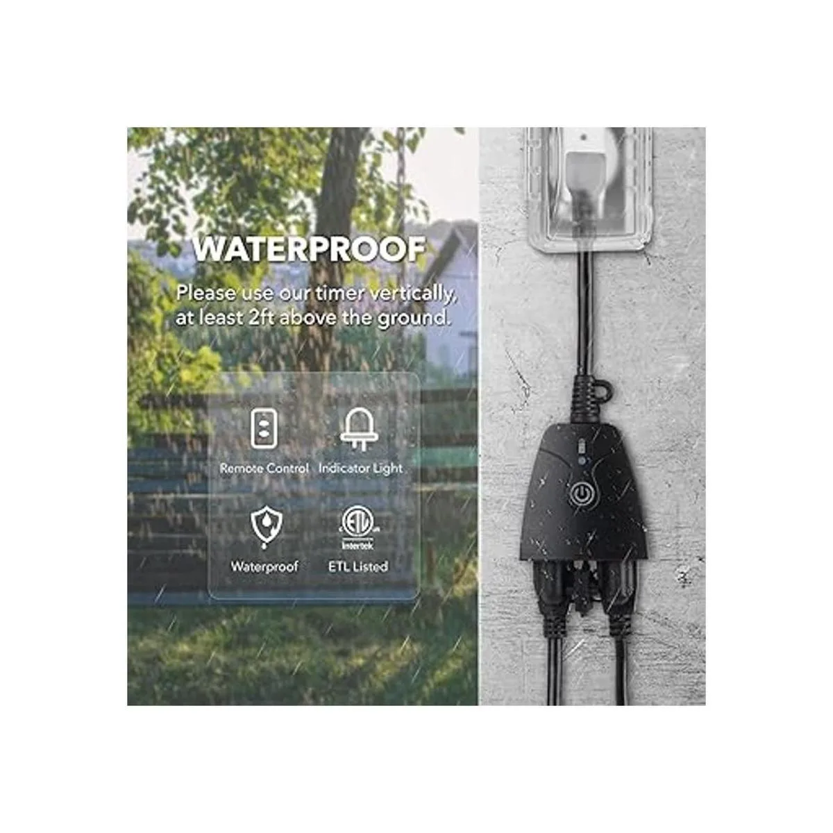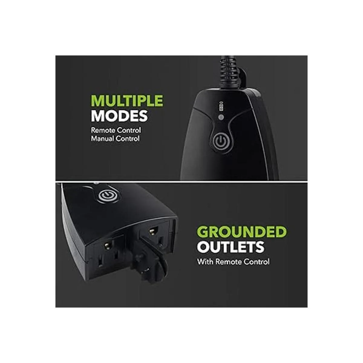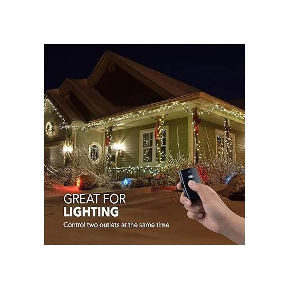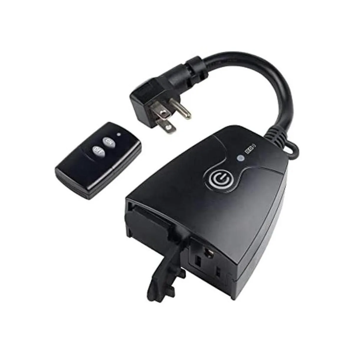 HBN Control remoto inalámbrico para interiores y exteriores, doble toma de 3 clavijas, resistente a la intemperie, 15 A, compacto, 2 enchufes de tierra con cable remoto de 6 pulgadas, rango de 100 pies, cuenta con certificación ETL incluye batería.