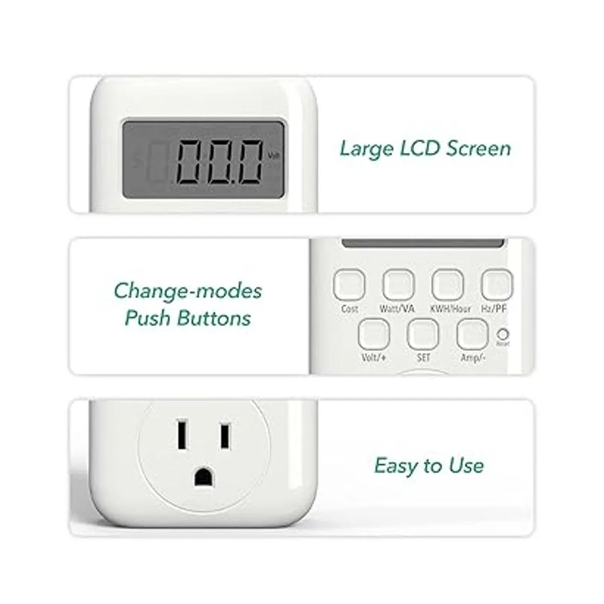 HBN Monitor de uso de electricidad, medidor de potencia con enchufe LCD, medidor de potencia digital de costo vatioVA KWHhora HzPH, 9 modos de pantalla para ahorro de energía, toma de medidor de vatios, monitor de consumo de energía