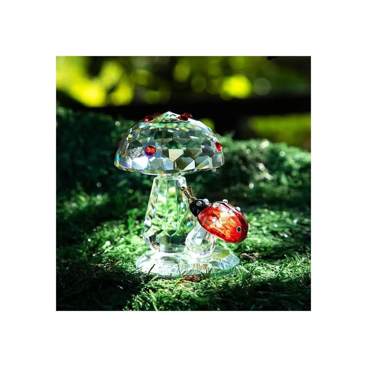 HD HYALINE DORA Figura de mariquita de cristal sobre hongos, estatuas para decoración de mesa para el hogar