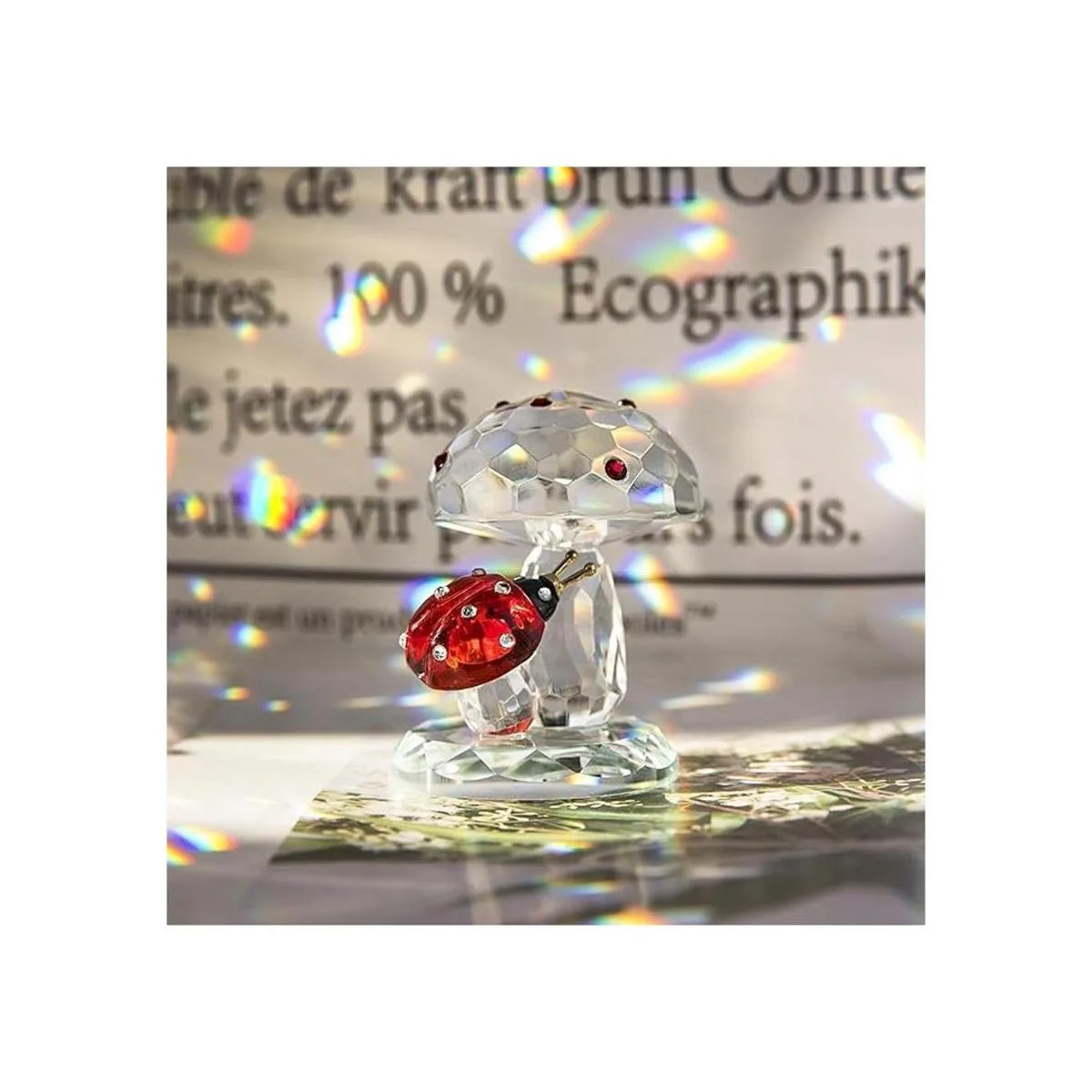 Artesanía hecha a mano: esta escultura de mariquita de cristal en hongos está hecha a mano por nuestros artesanos profesionales que tienen una rica experiencia en la creación de manualidades de cristal.