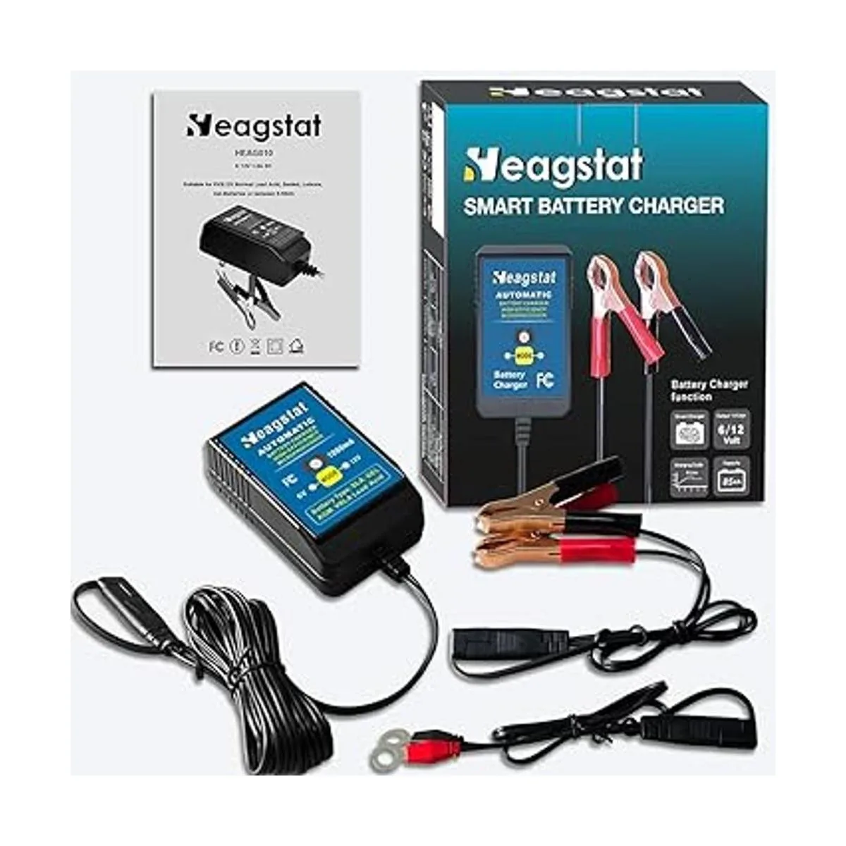 Heagstat Cargador de batería, cargador inteligente totalmente automático de 6 V12 V y 1 amperio, cargador de goteo, mantenedor de batería, para automóvil, motocicleta, cortacésped, barco, ATV, SLA AGM, baterías de plomo ácido