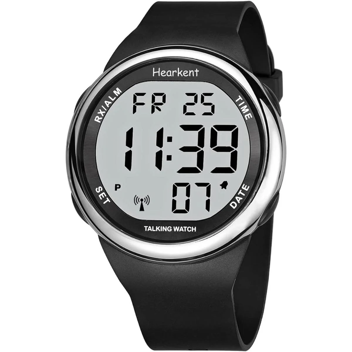Hearkent Reloj de conversación atómica para personas con discapacidad visual o personas mayores, pantalla LCD, gran número, fácil de leer