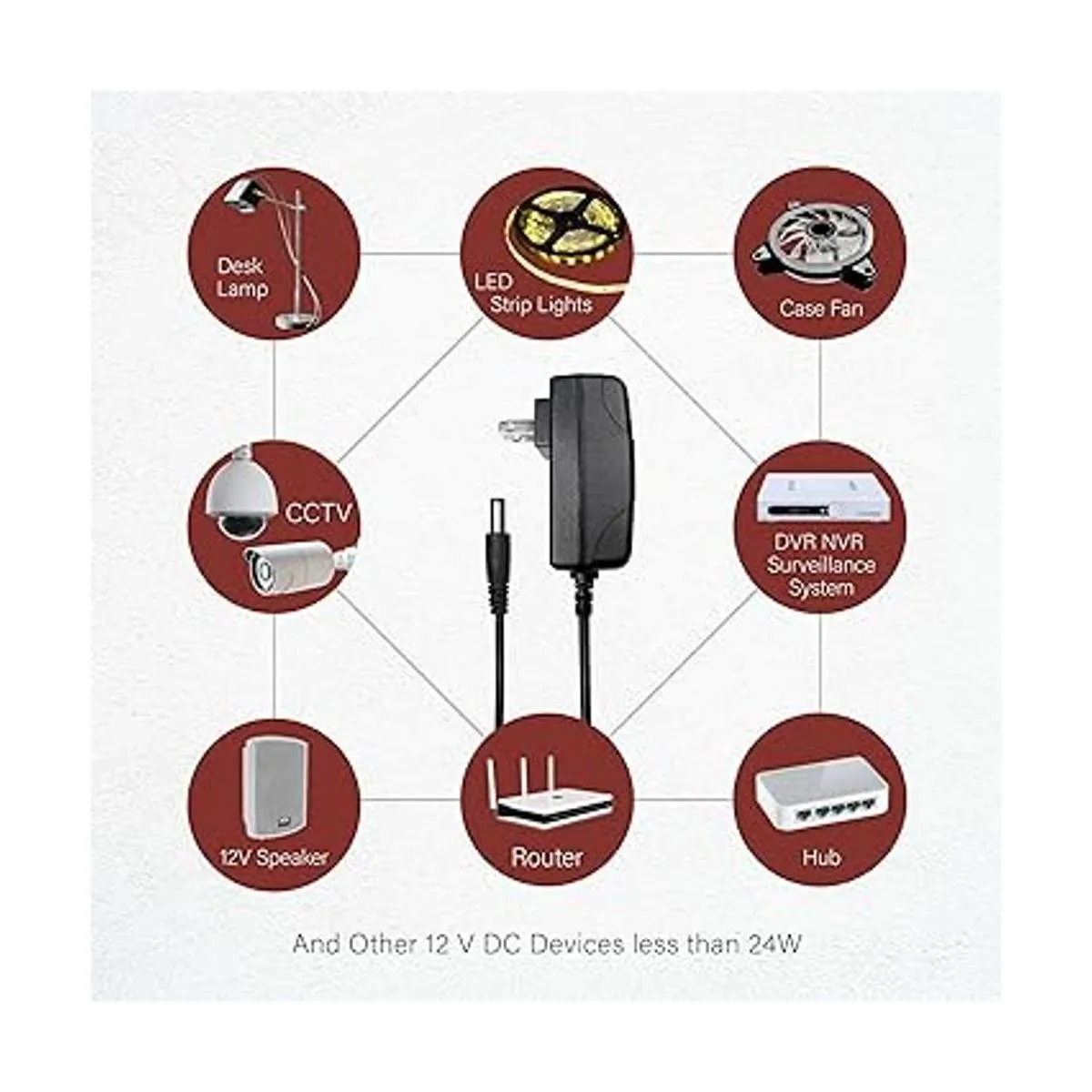 Aplicación: debe ser de 12 V y no exceder los 24 W: cámara CCTV de seguridad, tira de luces LED, módem de cable, enrutador, concentrador, teclado de piano electrónico, sistema de vigilancia DVR NVR, radio portátil, ventilador de carcasa de PC, motor, altavoces de computadora, disco duro externo y otros dispositivos de 12 V CC de menos de 24 W.