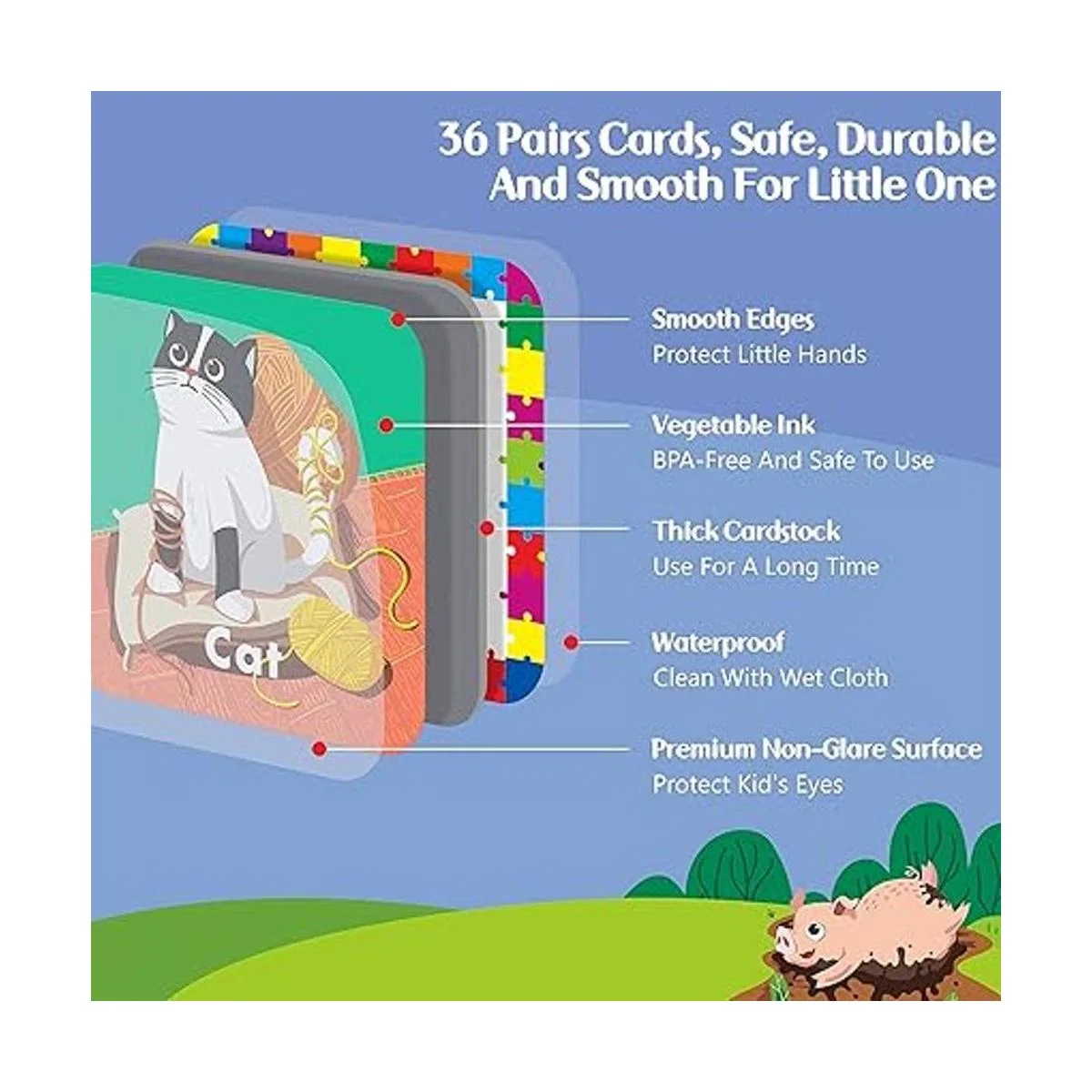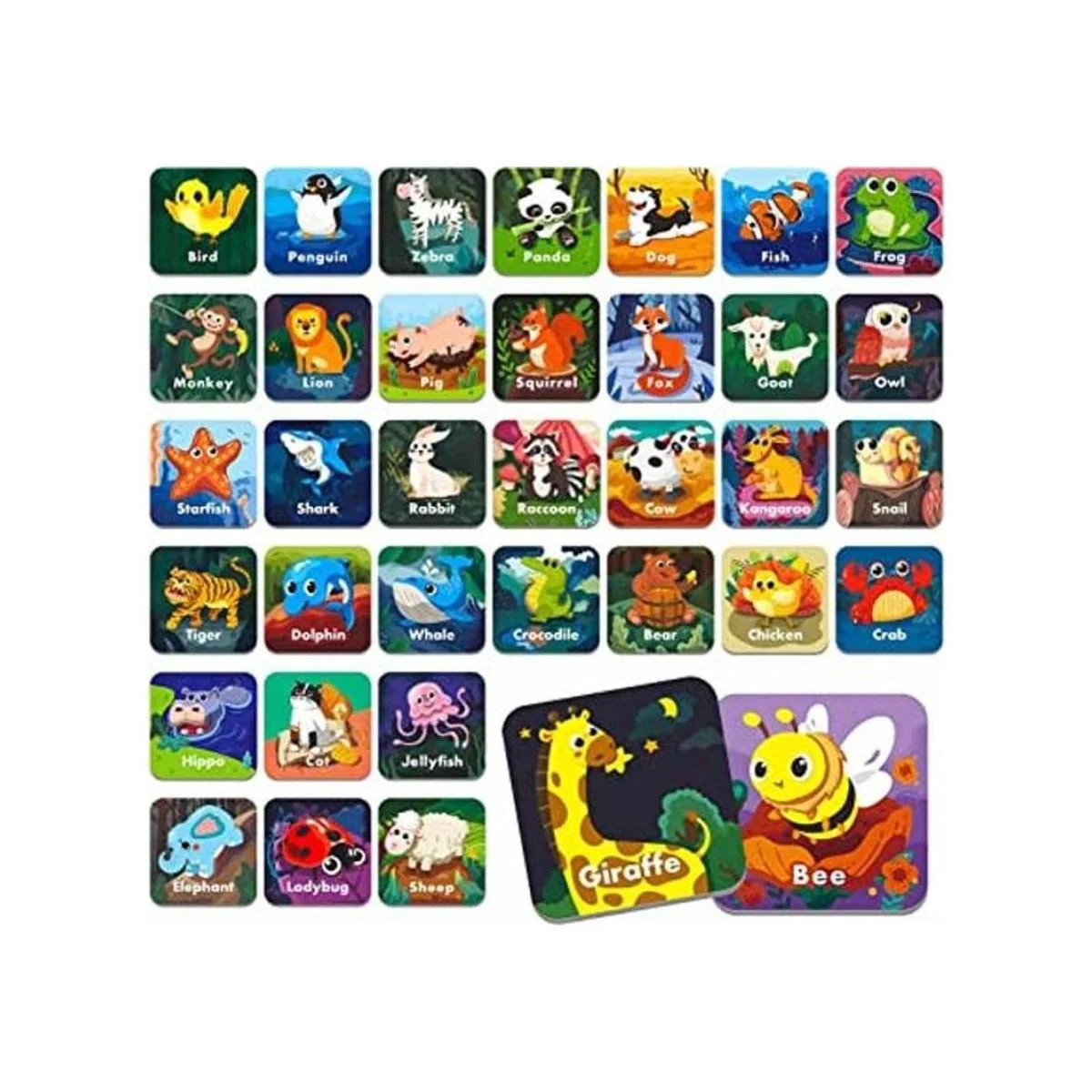 Lo que obtienes: 72 tarjetas a juego en 36 pares son los animales más populares para los niños. Más niños pueden jugar junto con suficientes cartas, lo que es muy útil para mejorar sus habilidades sociales de comunicación y expresión. Cada uno mide 2.0 x 2.0 in.