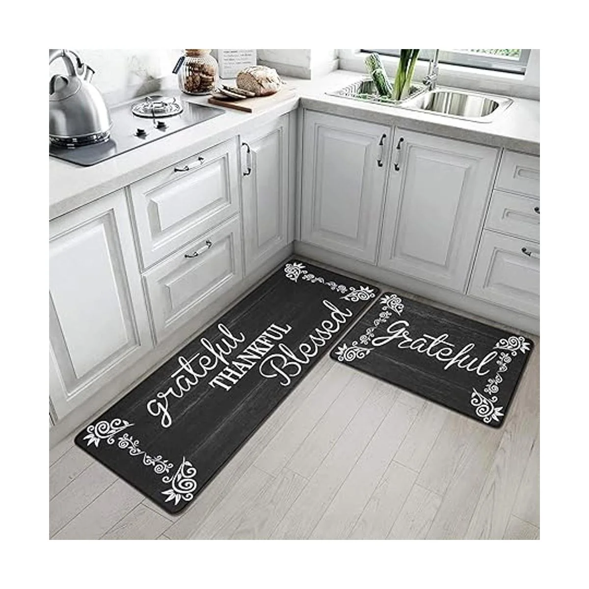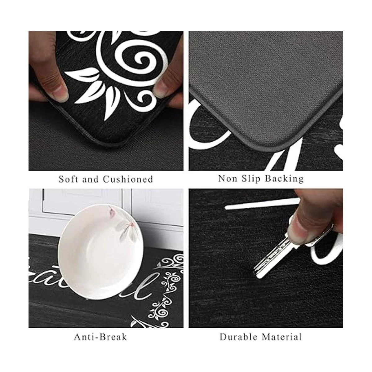Múltiples usos: tapetes cómodos antifatiga: juego de alfombra de cocina antifatiga y camino también adecuado como tapete de escritorio de pie, tapete de oficina, tapete de camino de cocina, felpudo de dormitorio, tapete de baño, alfombra de habitación de niños u otra aplicación de alfombrilla antifatiga, proporciona un acento cálido para el hogar o la cocina.