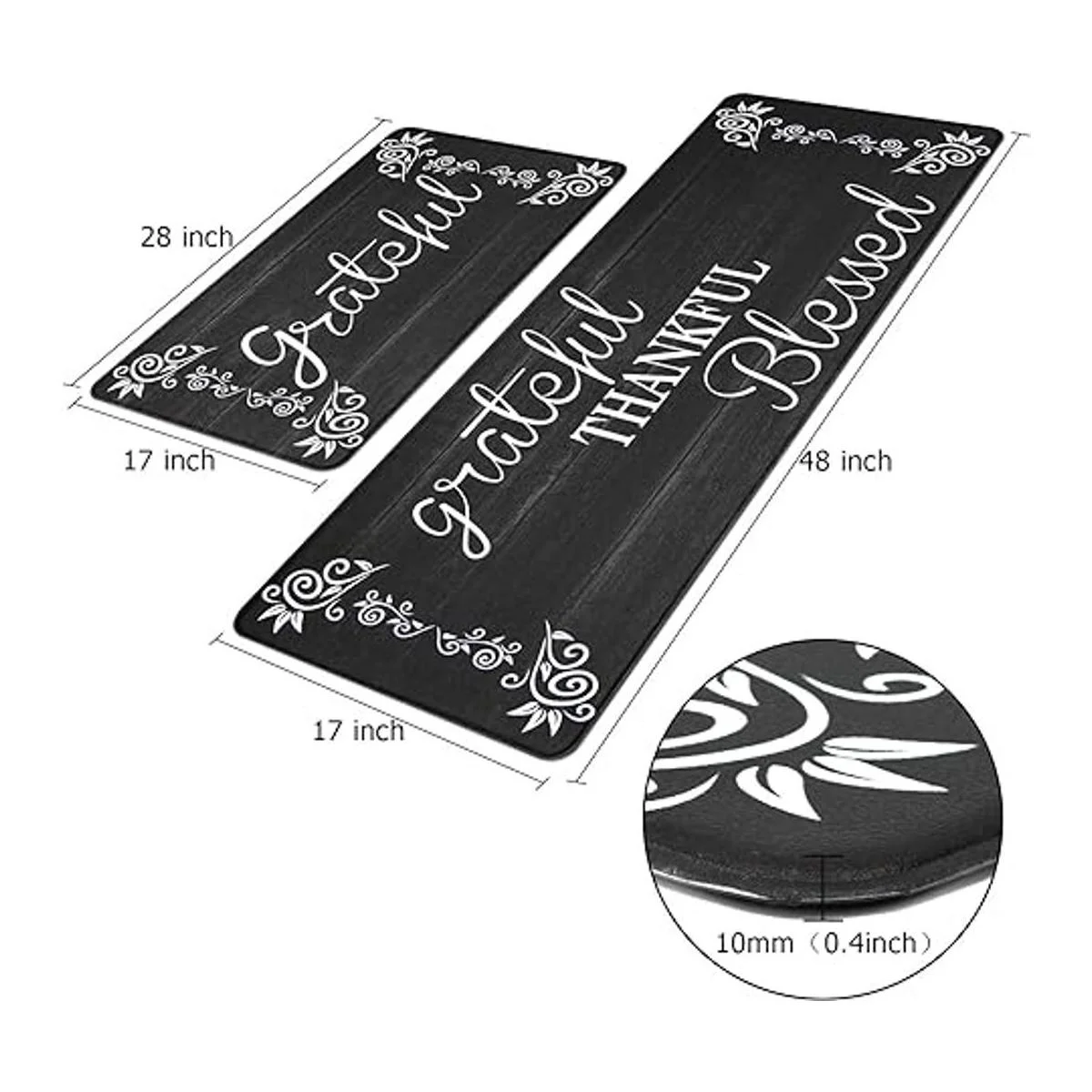 Juego de 2 tapetes de cocina antifatiga y corredor. El paquete incluye 2 tapetes acolchados de 0.394 in de grosor. El juego de alfombras de cocina antifatiga HEBE mide: 17 x 48 pulgadas 17 x 28 pulgadas, perfecto para suelo de cocina, escritorio de pie, oficina o lavandería.