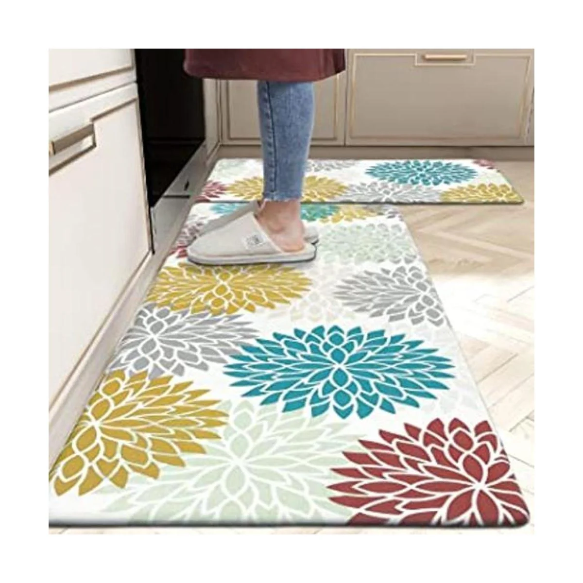 Juego de alfombras y alfombrillas de cocina antideslizantes: la parte superior del tapete de cocina antifatiga está diseñada con un atractivo estilo tenue y la parte inferior está hecha de material antideslizante; también los bordes biselados ayudan a prevenir tropiezos. El tapete de cocina se puede utilizar en múltiples superficies azulejos, madera, cerámica, mármol, etc..