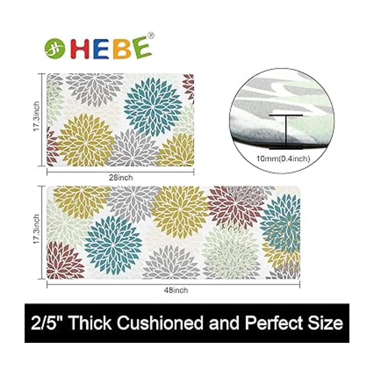 Alfombrillas de cocina antifatiga: el juego de alfombrillas de cocina antifatiga HEBE de 0.394 in de grosor proporciona un apoyo cómodo para tus pies y rodillas durante largos períodos de pie, ya sea que estés trabajando o cocinando. Perfecto para uso doméstico o comercial en áreas como restaurantes, gimnasio, peluquería o en cualquier espacio mientras la gente está de pie durante largos períodos de tiempo.