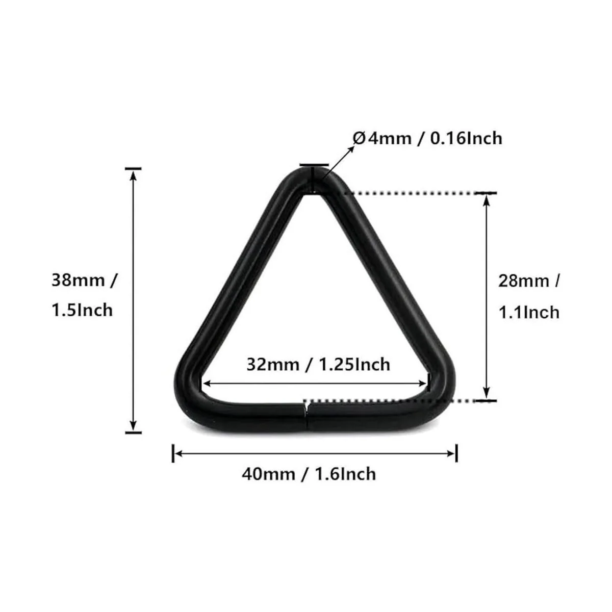 Hebilla de anillo triangular de metal de 114 pulgadas, con borde redondo, cierre de bolsa, correa de bolso, color negro, paquete de 20