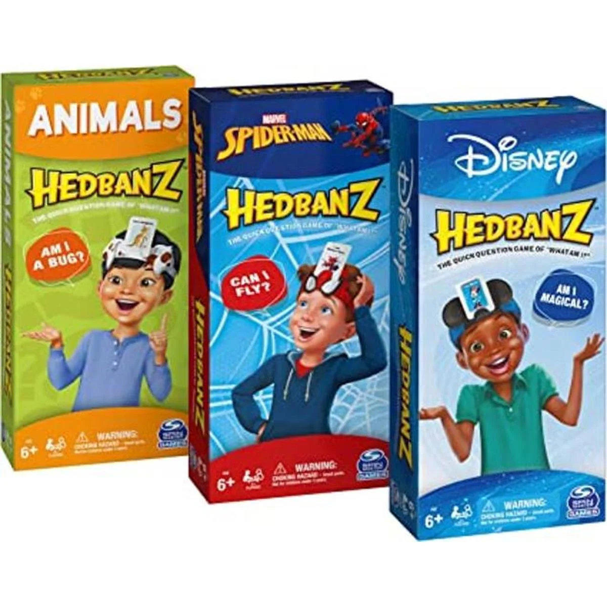 Hedbanz, paquete de juegos de mesa de adivinanzas con imágenes de Disney, Spiderman, Animales de noche de juego familiar, para adultos y niños de 6 años en adelante