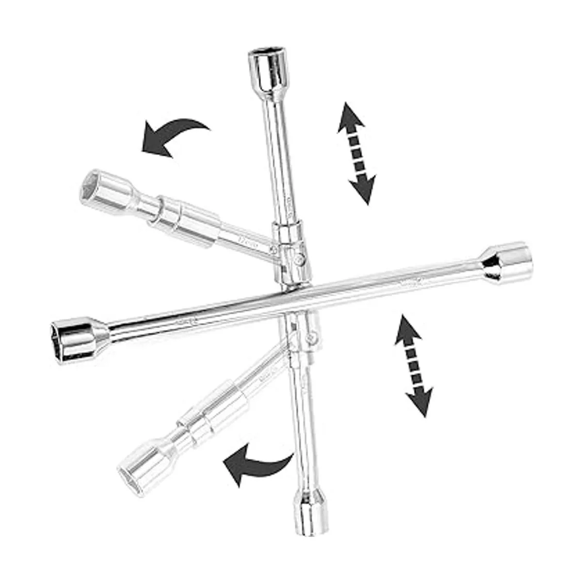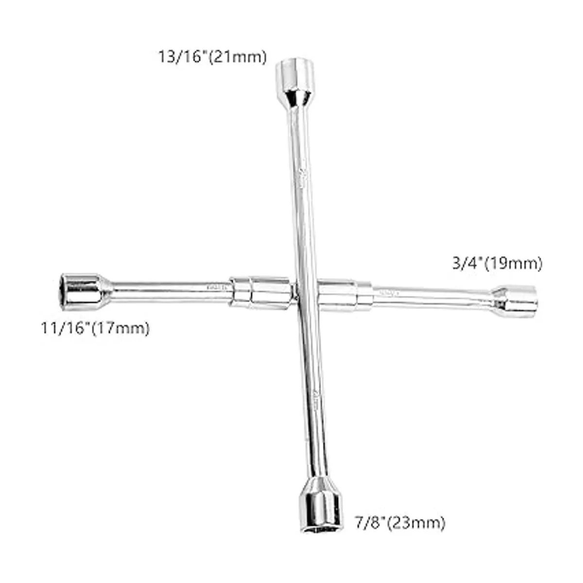 Diseño multifuncional: esta llave de 4 vías es una herramienta práctica, disponible en 4 tamaños hexagonales diferentes de 0.669 in, 0.748 in, 0.827 in, 0.906 in para satisfacer tus diferentes usos, adecuada para una variedad de tornillos de neumáticos de automóvil.