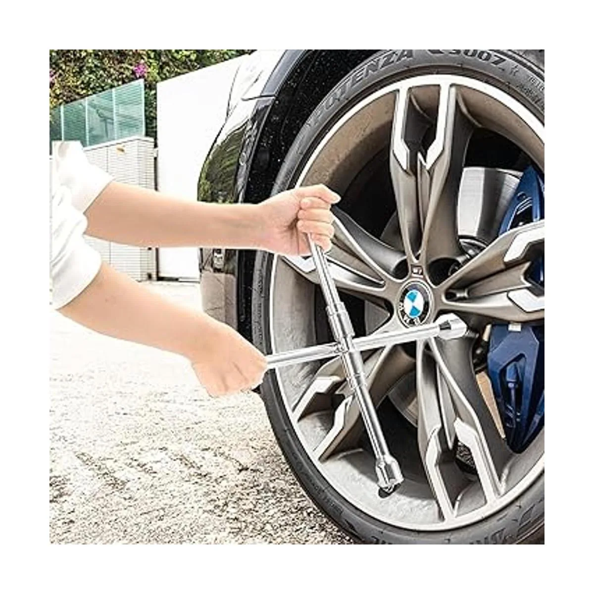 Adecuado para una variedad de vehículos: universal para coches, camiones ligeros, SUV, caravanas y furgonetas. Solo tienes que elegir el extremo correcto de acuerdo a tus necesidades, y luego girar vigorosamente para completar la operación, lo que es un buen ayudante para que puedas fijar el neumático, ahorrando tiempo y esfuerzo.